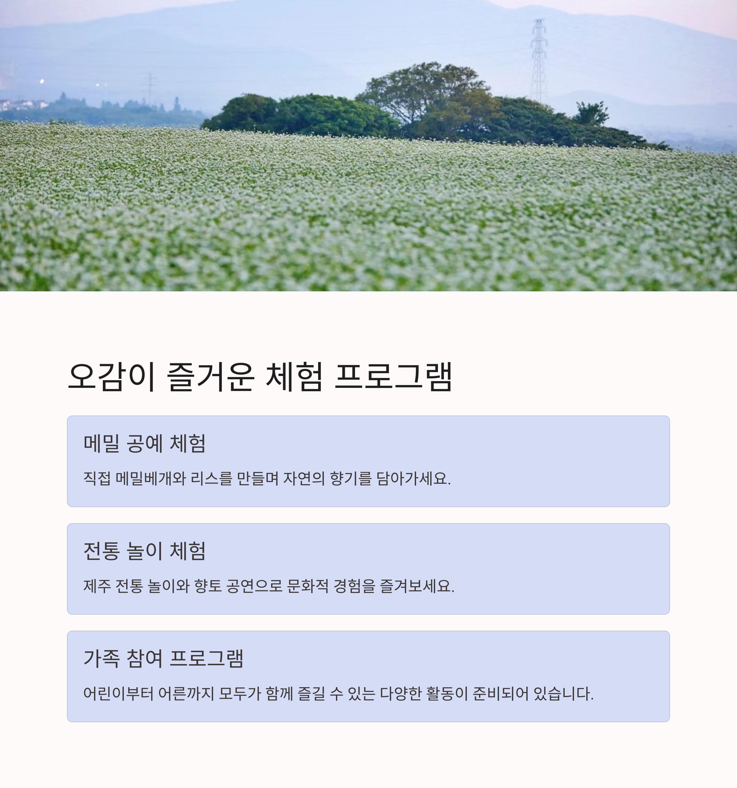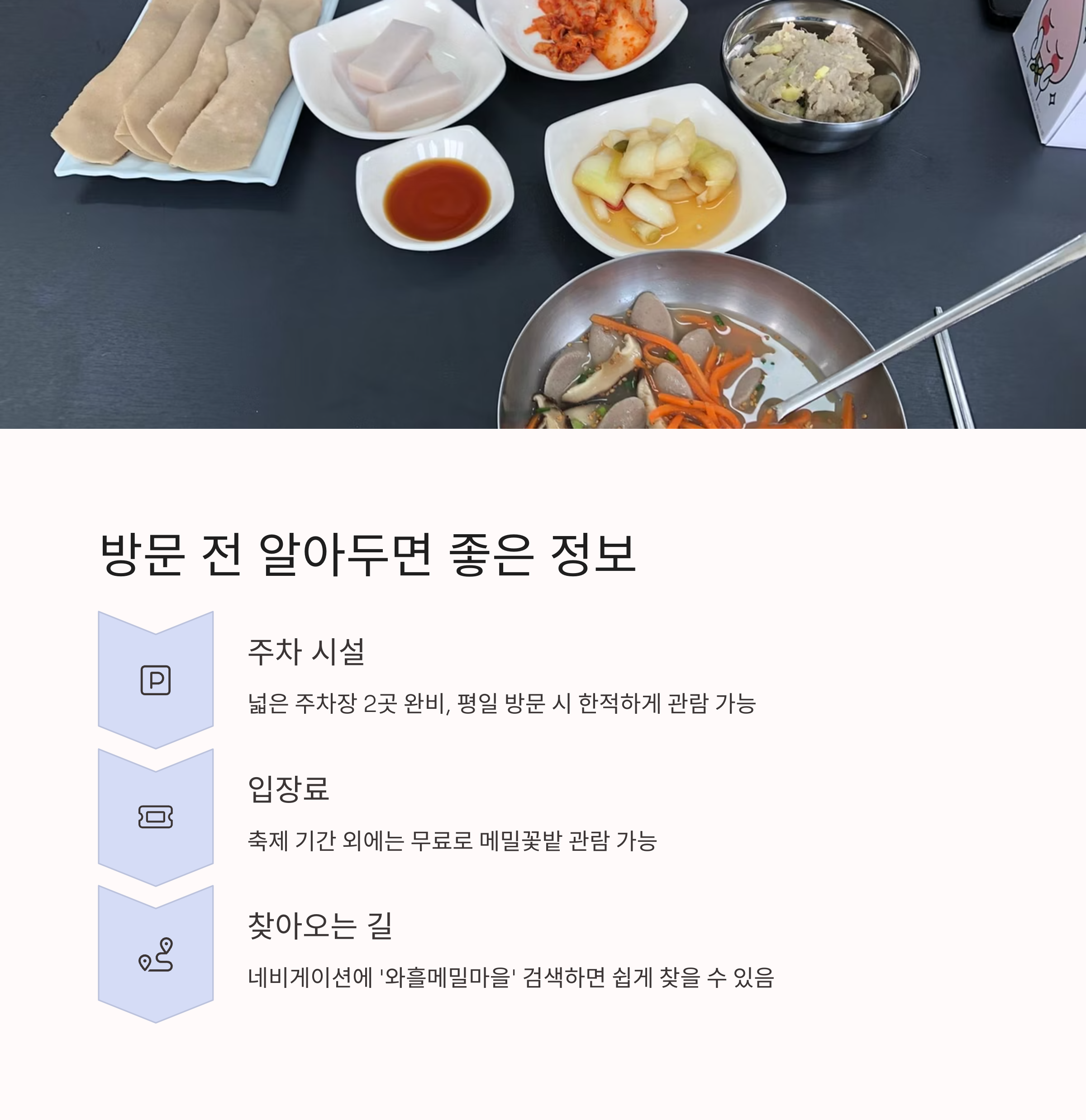 와흘 메밀마을을 다녀오신 적 있으신가요? 가장 좋았던 포토존이나 추천하고 싶은 팁이 있다면 댓글로 자유롭게 공유해주세요. 다른 분들의 여행 준비에 큰 도움이 됩니다!