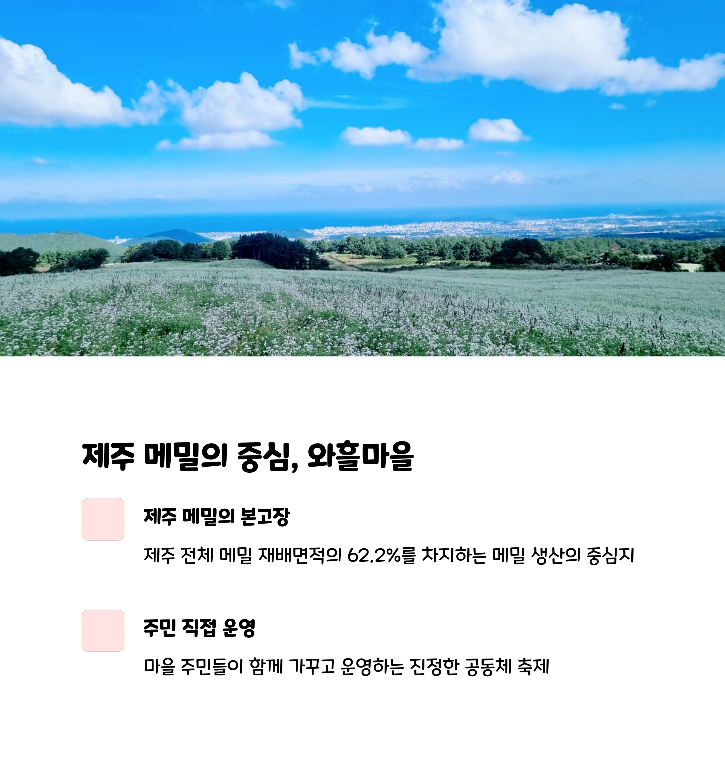 | 교통 팁 | '와흘메밀마을협의회' 검색, 주말엔 외부 주차 추천 |