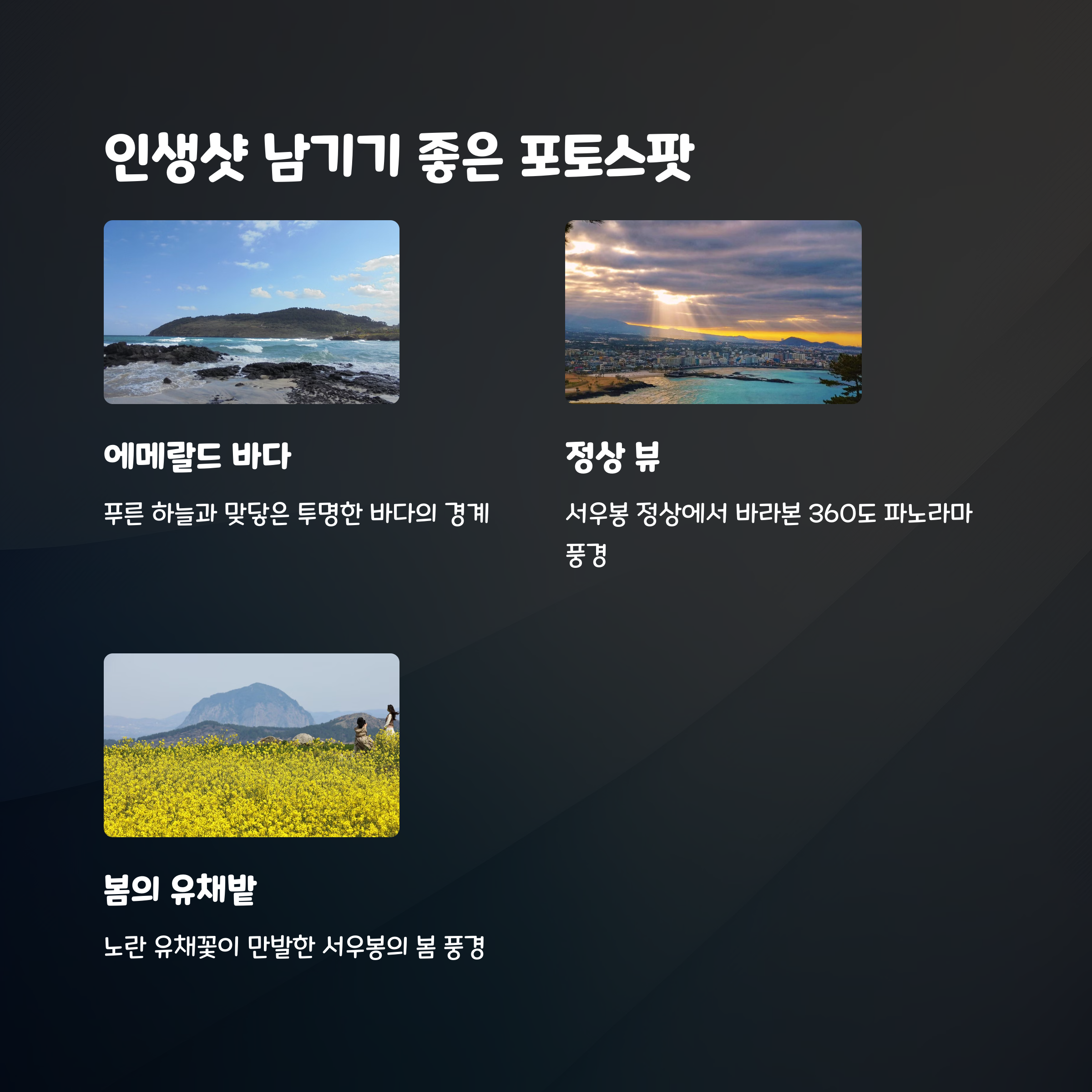 제주 함덕과 서우봉은 단순한 관광지가 아닌 몸과 마음을 치유할 수 있는 자연 속 쉼터입니다. 걷기만 해도 힐링이 되는 이 코스는 제주의 진짜 매력을 경험할 수 있는 숨겨진 보물과 같은 곳입니다. 짧은 시간이라도 여유롭게 이 길을 걸으며 바쁜 일상 속에 잠시 멈춤을 가져보세요. 여행의 진정한 의미를 다시금 느낄 수 있을 것입니다.