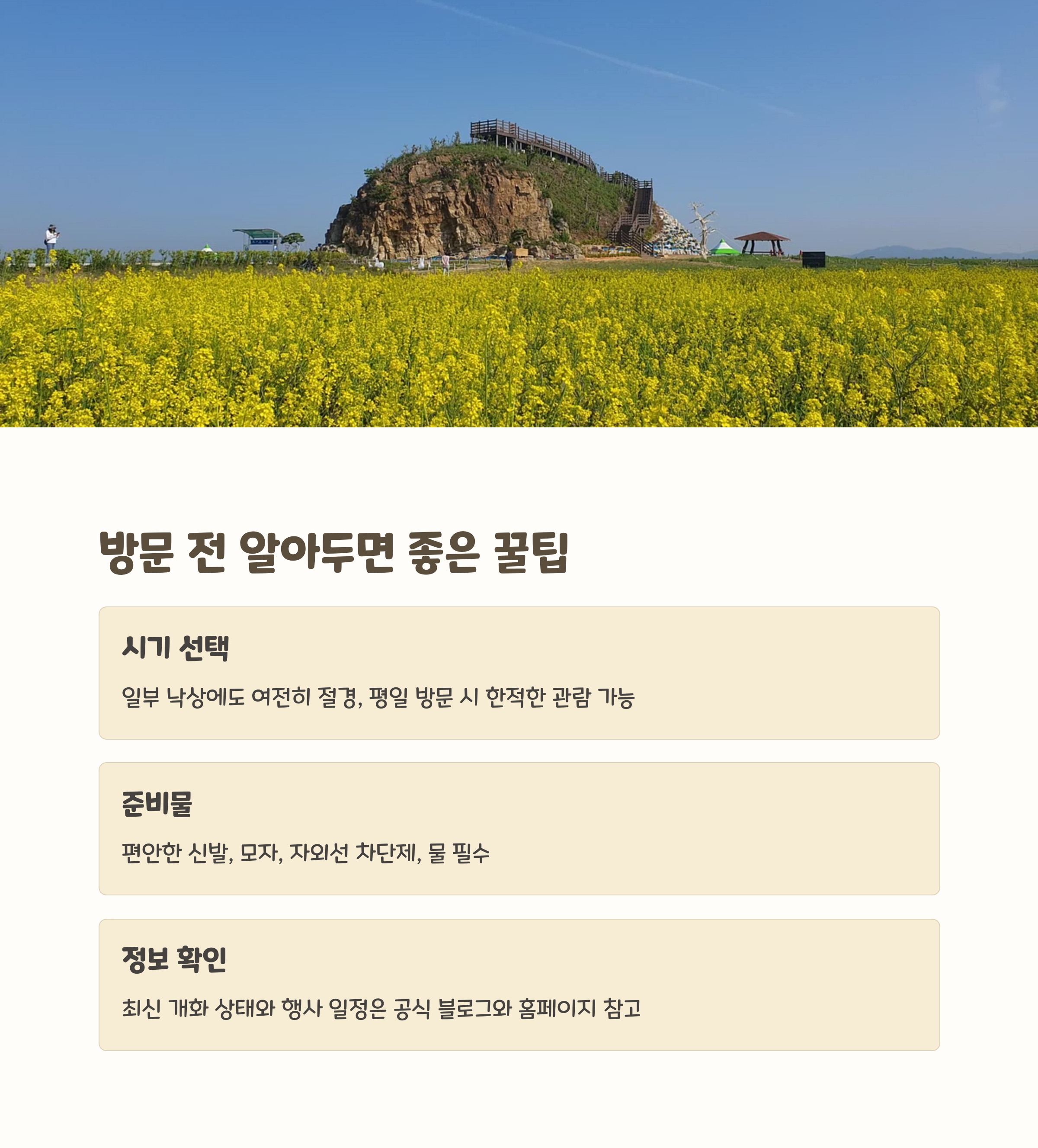 축제 기간 동안엔 음악 공연, 농촌 체험, 플리마켓 등 다양한 즐길 거리가 마련되어 있어 꽃 구경 외에도 오감 만족 여행이 가능합니다. 현장에는 간이 주차장과 안내 부스가 운영되며, 실시간 개화 상태 및 일정은 공식 블로그와 SNS를 통해 매일 업데이트되니 방문 전 참고하시면 좋습니다. 지금 바로 떠나도 후회 없을 2025 봄 시즌 최적의 축제, 지금 이 순간 다녀오시길 추천드립니다!
