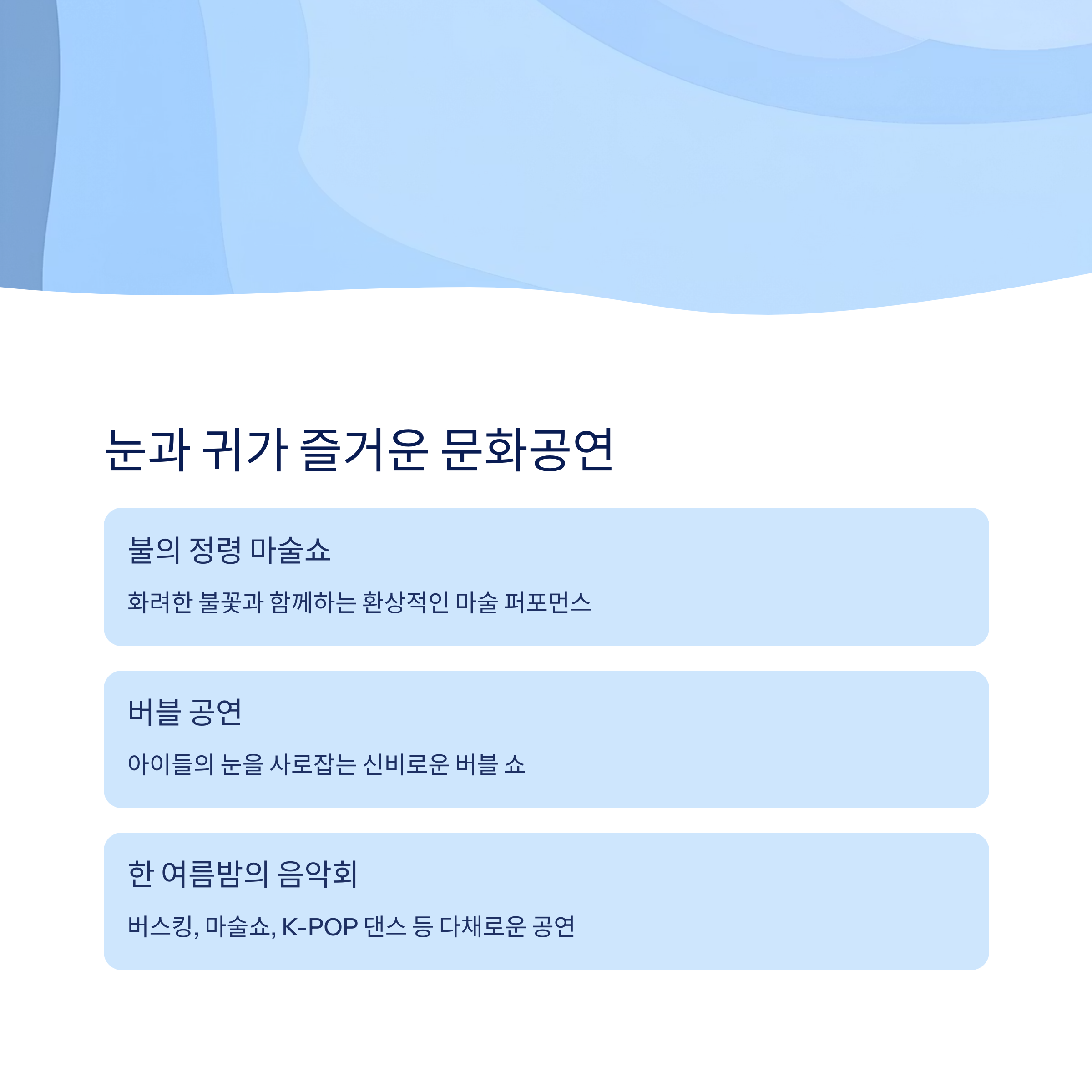 운영 시간은 평일 14시~20시, 주말 10시~21시로 넉넉하게 즐길 수 있으며, 오후에는 수국 조명과 함께하는 야간 정원 산책도 가능합니다. 행사장 내 푸드트럭과 특산물 판매 부스에서는 진주의 맛과 정취를 함께 체험할 수 있어 당일치기 여행으로도 알찬 여름 일정을 보낼 수 있는 명소입니다.