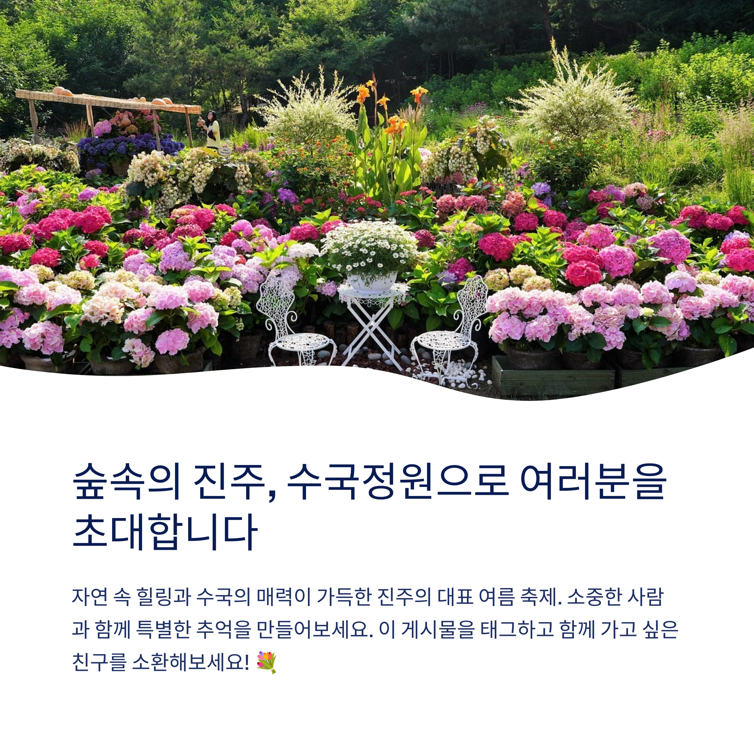 수국 수국 페스티벌로 열리는 2025 대표 여름 행사 문화공연과 야외 포토존, 다양한 체험 프로그램 진주 대표 여름 여행지로 연인·가족 모두 추천