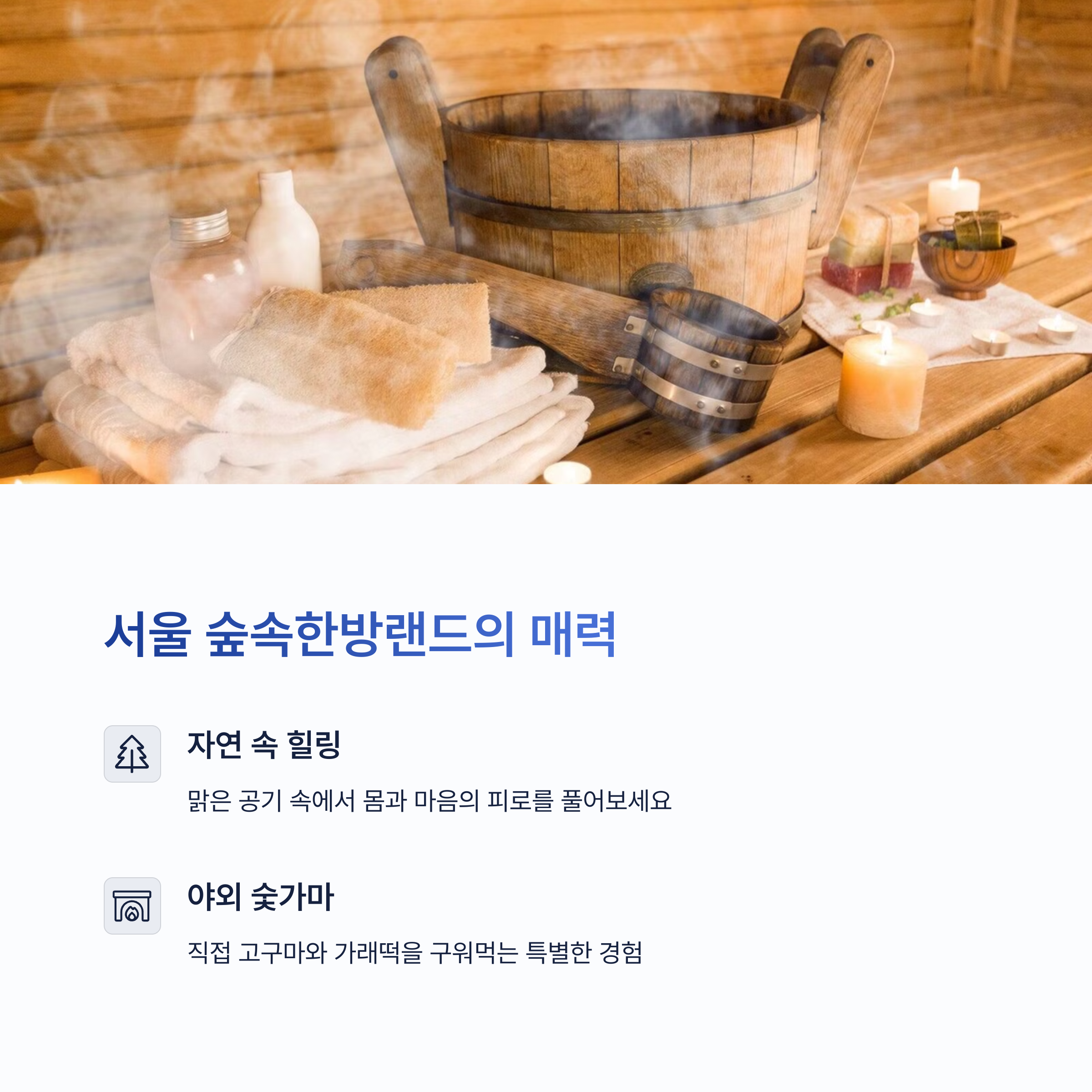 | 추천 장소 | 서울숲속한방랜드, 아쿠아필드, 씨메르 인천 |
