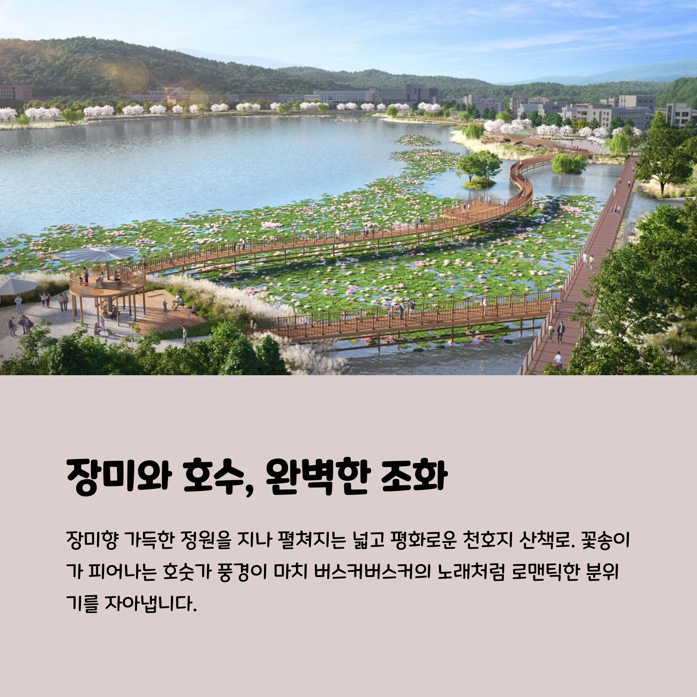 호수 산책로와 잔디밭이 어우러진 풍경 오전 시간 방문 시 더 여유로운 감상 가능 편의시설 적어 사전 준비가 만족도 좌우