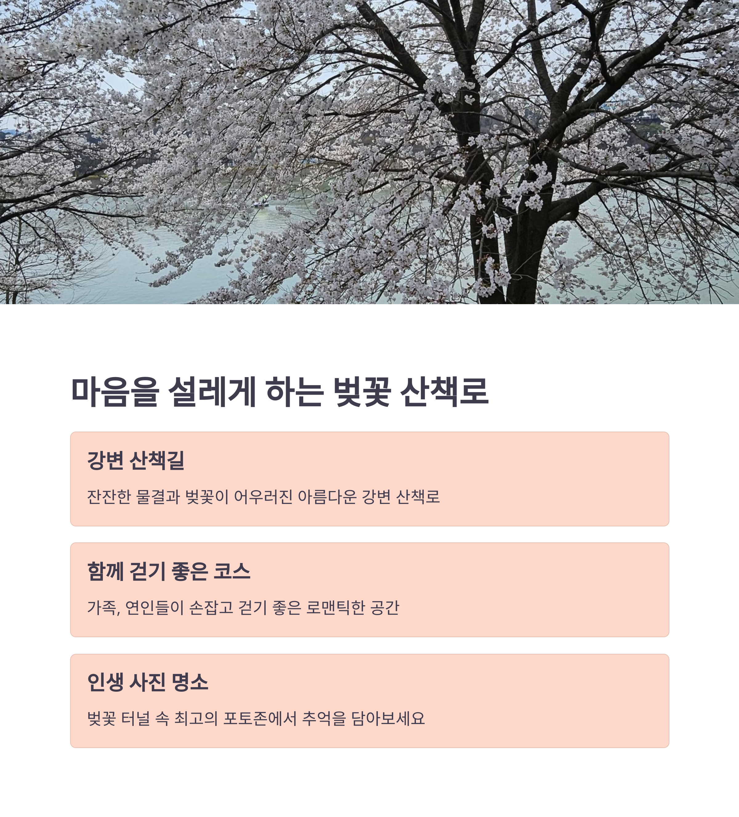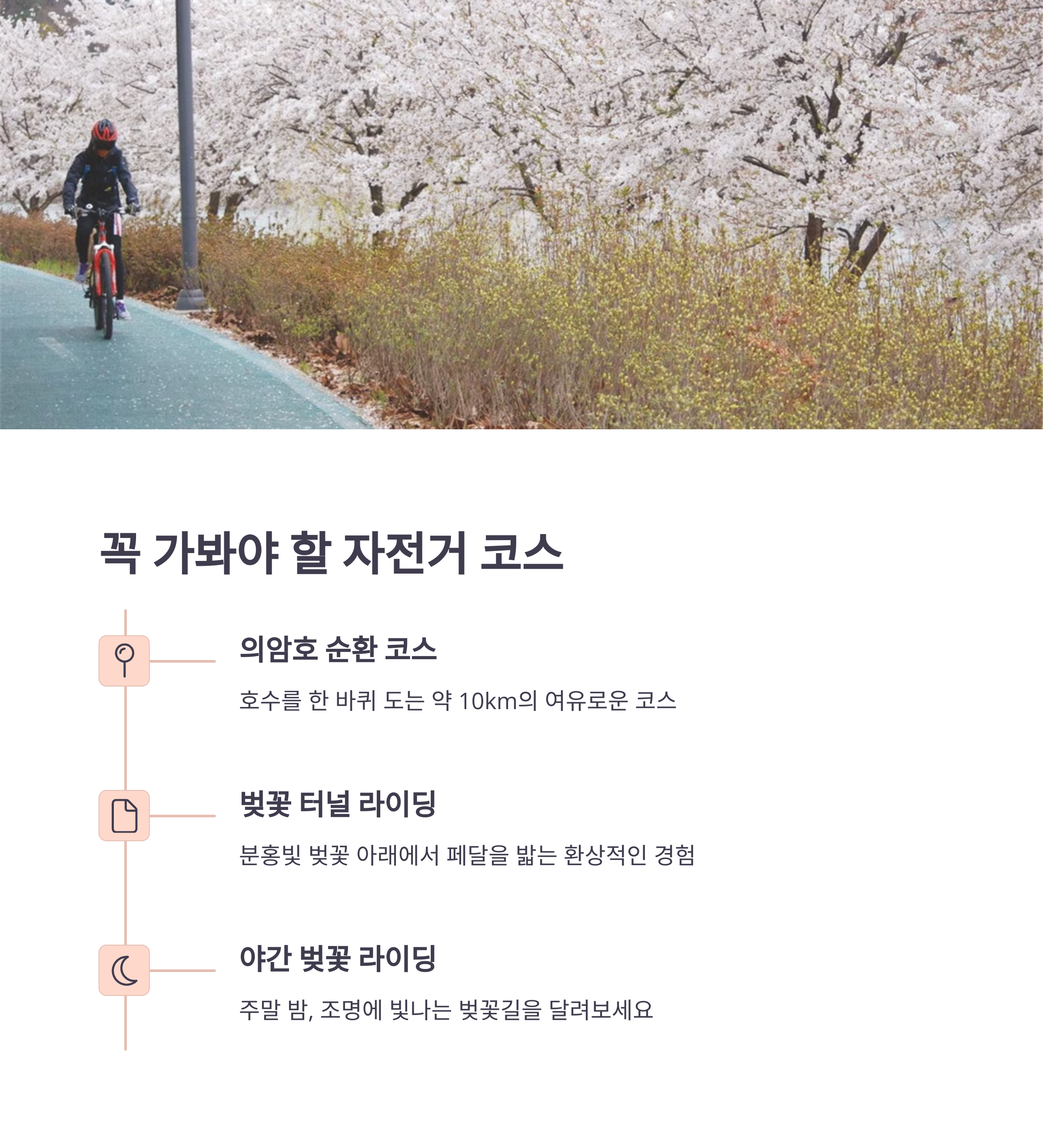 | 벚꽃 포인트 | 자전거 코스 | 추가 즐길거리 |
