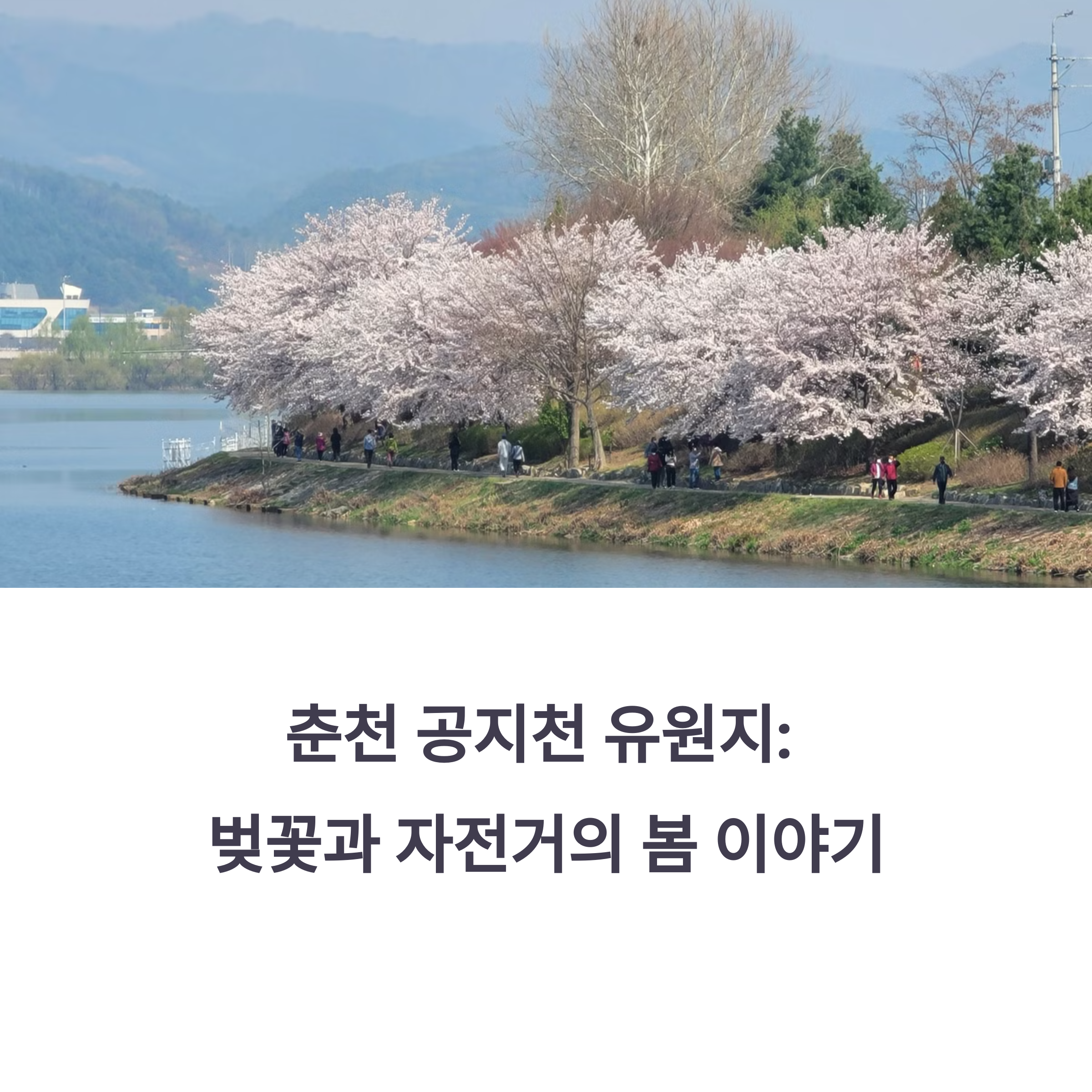 | 공지천 강변 산책로 자전거길 벚꽃 터널 4월 중순 만개 | 의암호 연결 코스 대여소 1시간 3,000원 야간 라이딩 추천 | 오리배 체험 인근 카페 거리 인생샷 명소 다수 |