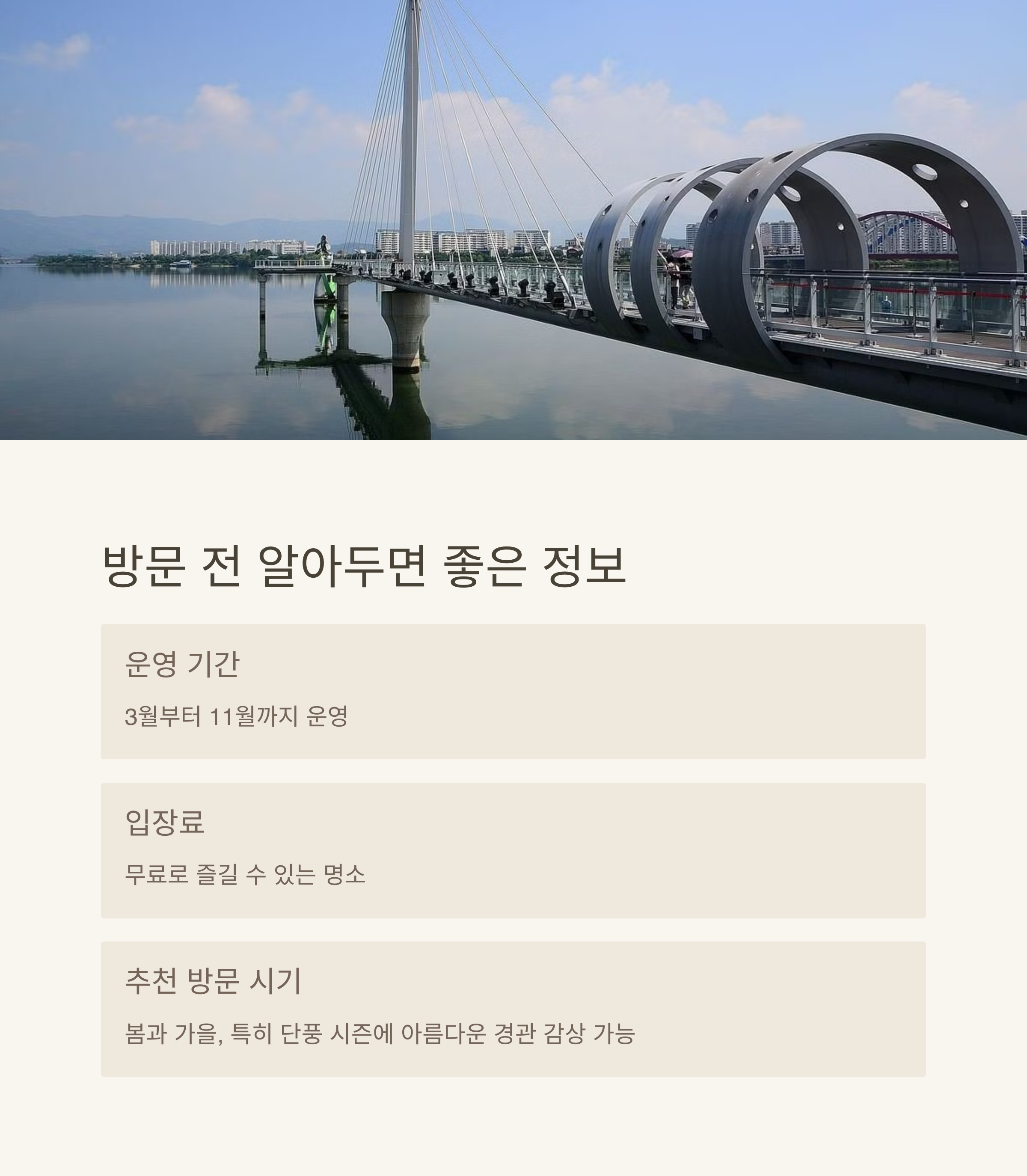 | 운영 정보 | 3월~11월 운영, 입장료 무료로 자유롭게 이용 가능 |