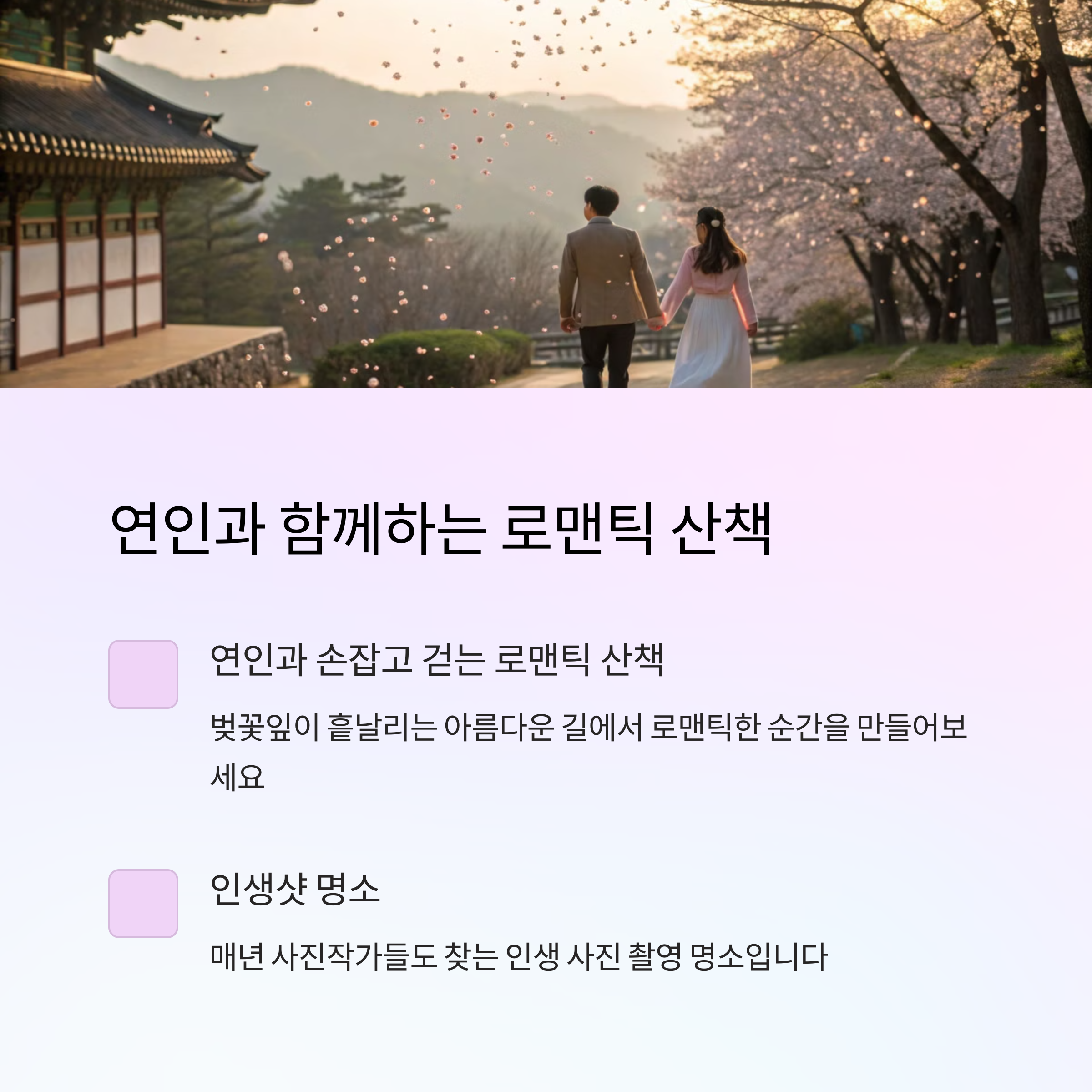 여러분은 이번 봄, 누구와 함께 벚꽃길을 걷고 싶으신가요? 기대되는 여행지나 추천 명소를 댓글로 공유해주세요!