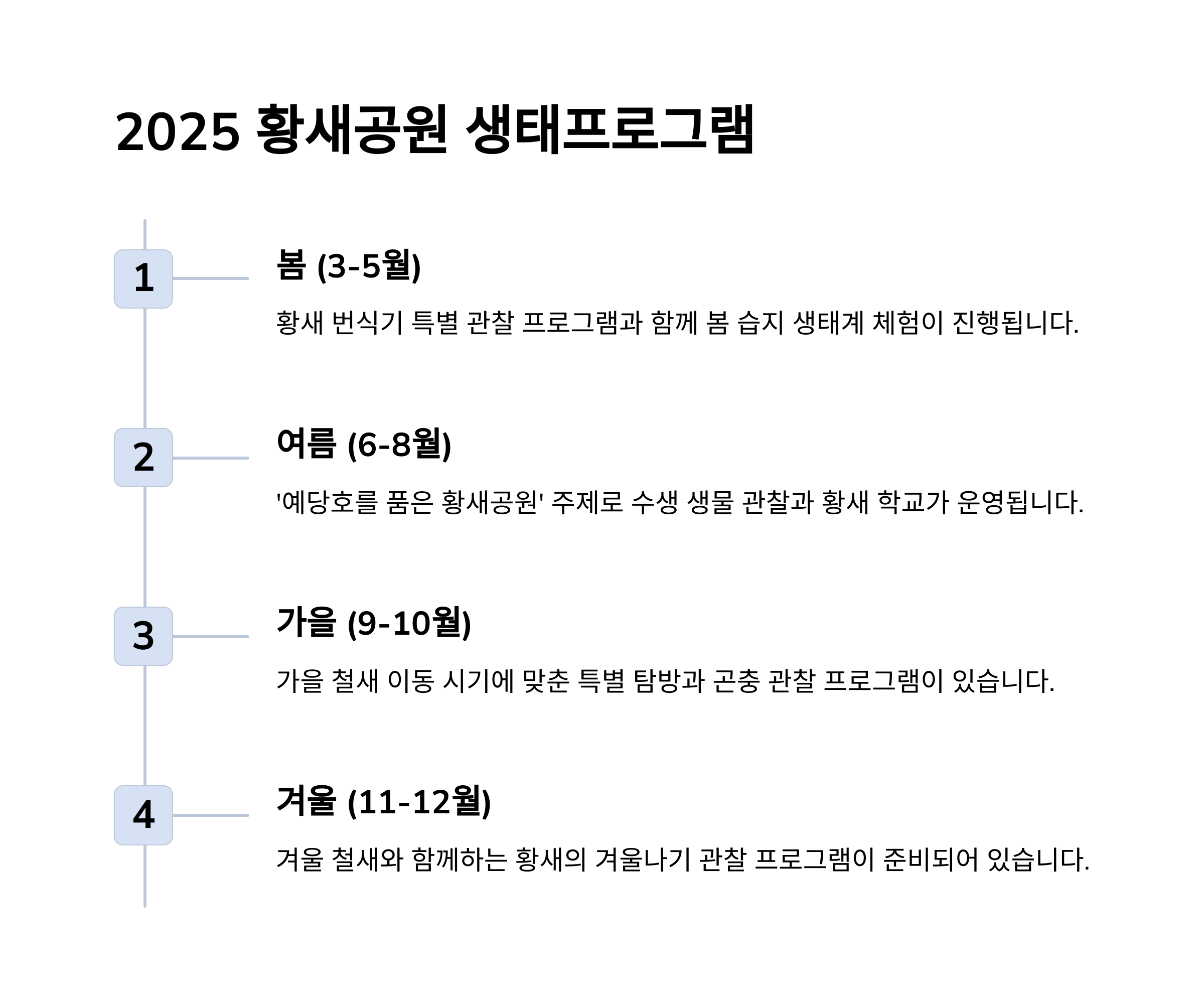 예산 황새공원은 국내 유일의 황새 복원 전문 시설로, 자연 생태를 체험하고 황새를 가까이에서 관찰할 수 있는 공간입니다. 2025년에는 ‘예당호를 품은 황새공원’이라는 테마로 3월부터 12월까지 다양한 생태프로그램이 운영될 예정입니다. 아이들과 함께 방문하면 더욱 뜻깊은 시간을 보낼 수 있습니다.