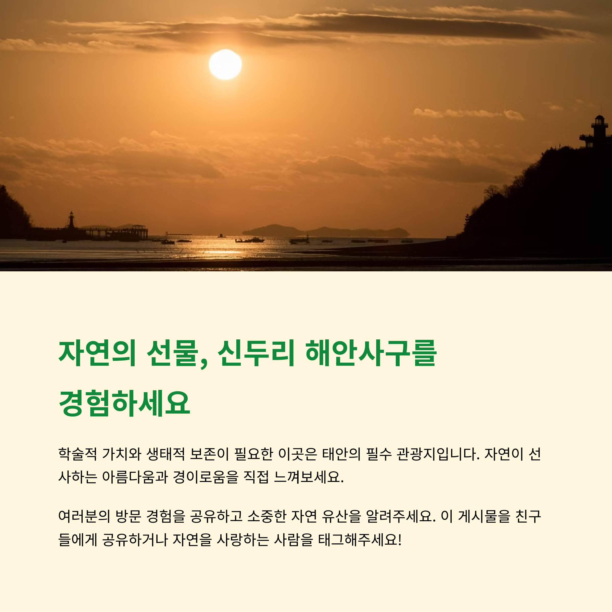 신두리 해안사구를 다녀오신 분들은 기억에 남는 계절이나 장면이 있으셨나요? 댓글로 여러분의 경험을 공유해주세요. 또 다른 여행자에게 소중한 정보가 됩니다!
