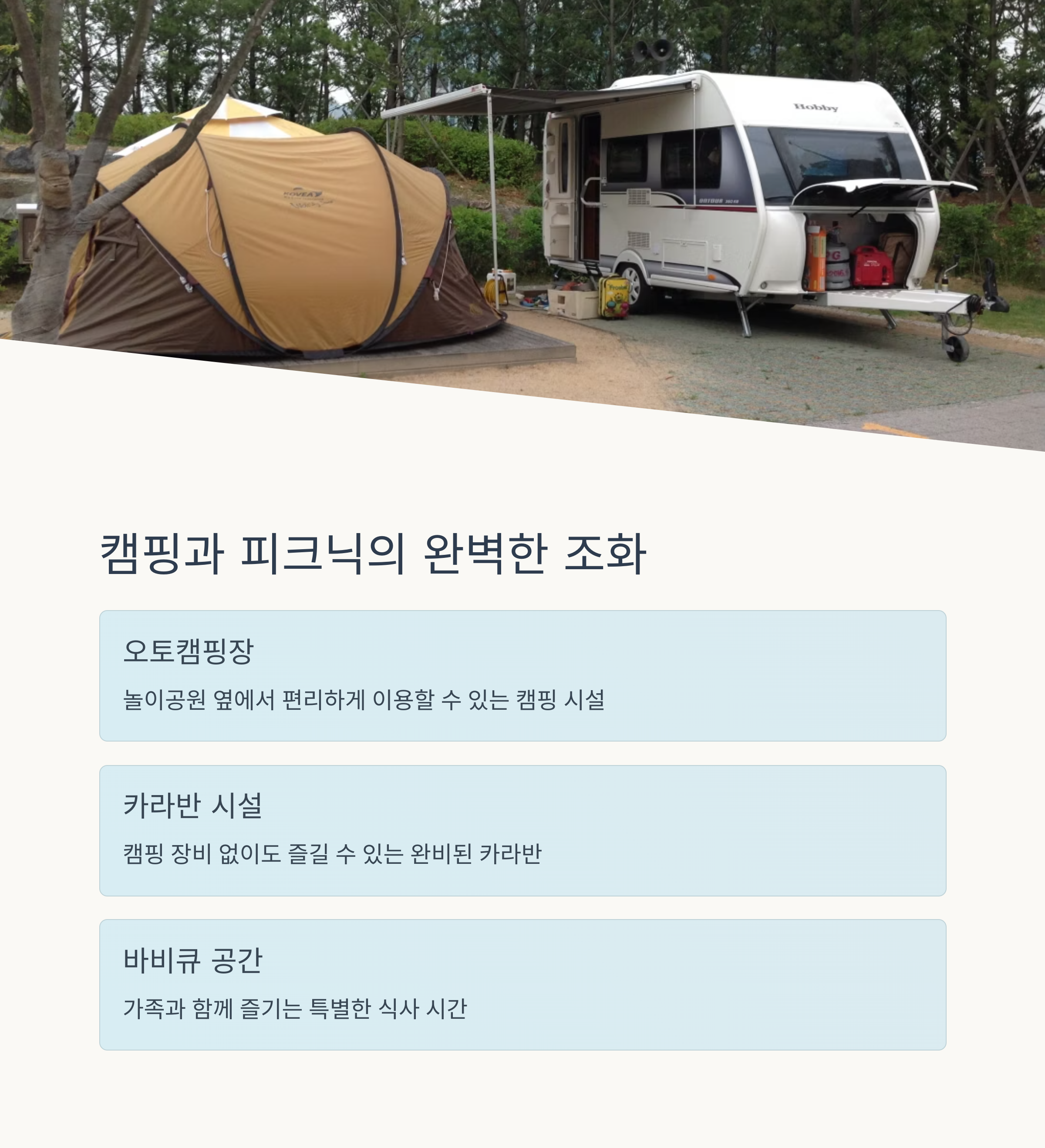 | 서울 근교에서 하루 나들이로 딱 좋은 장소 | 아이들을 위한 다양한 놀이기구가 준비됨 | 피크닉과 산책, 오리배 체험으로 힐링 가능 |