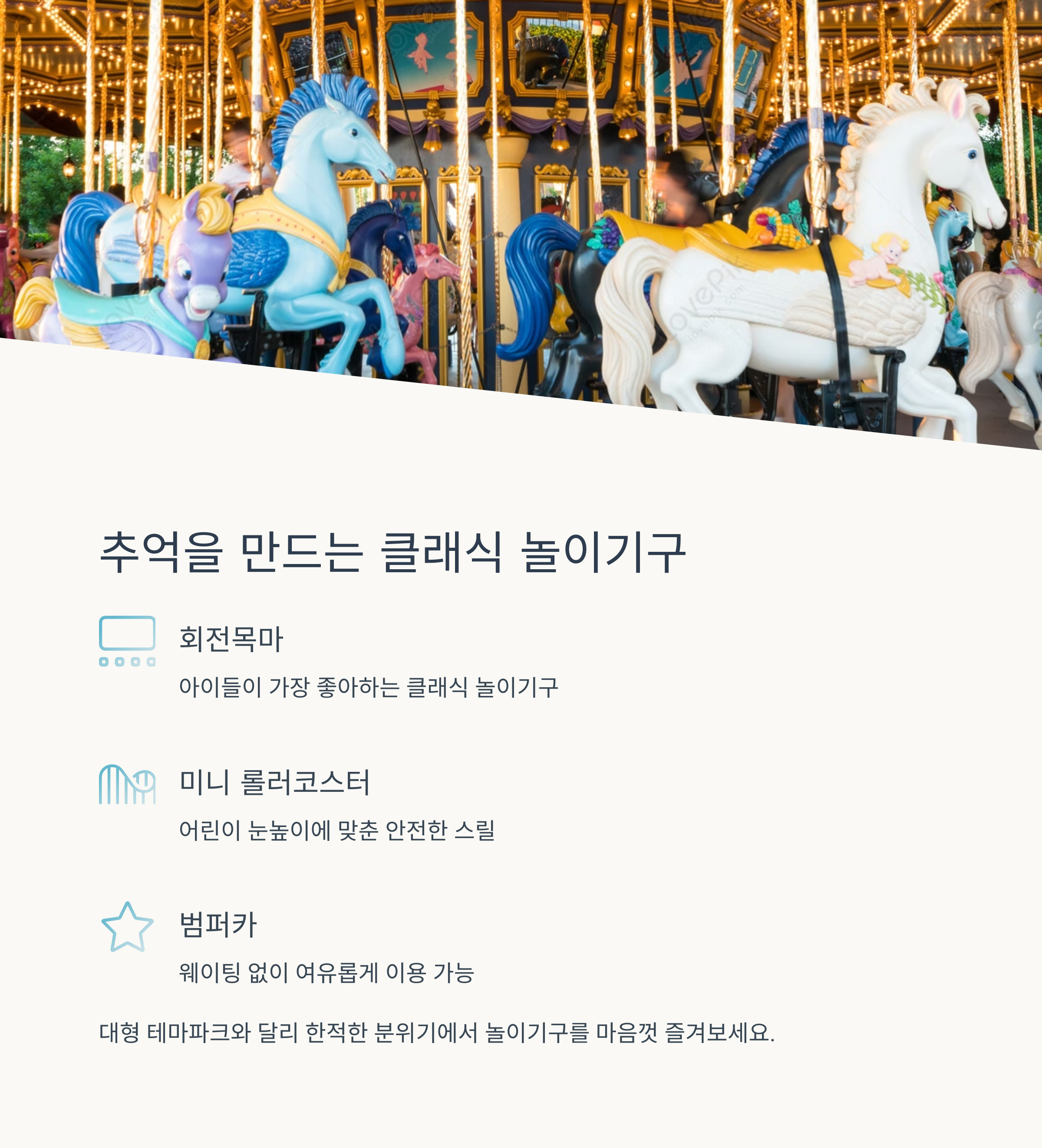 가족 놀이공원 | 아이와 함께할 수 있는 다양한 놀이기구 |