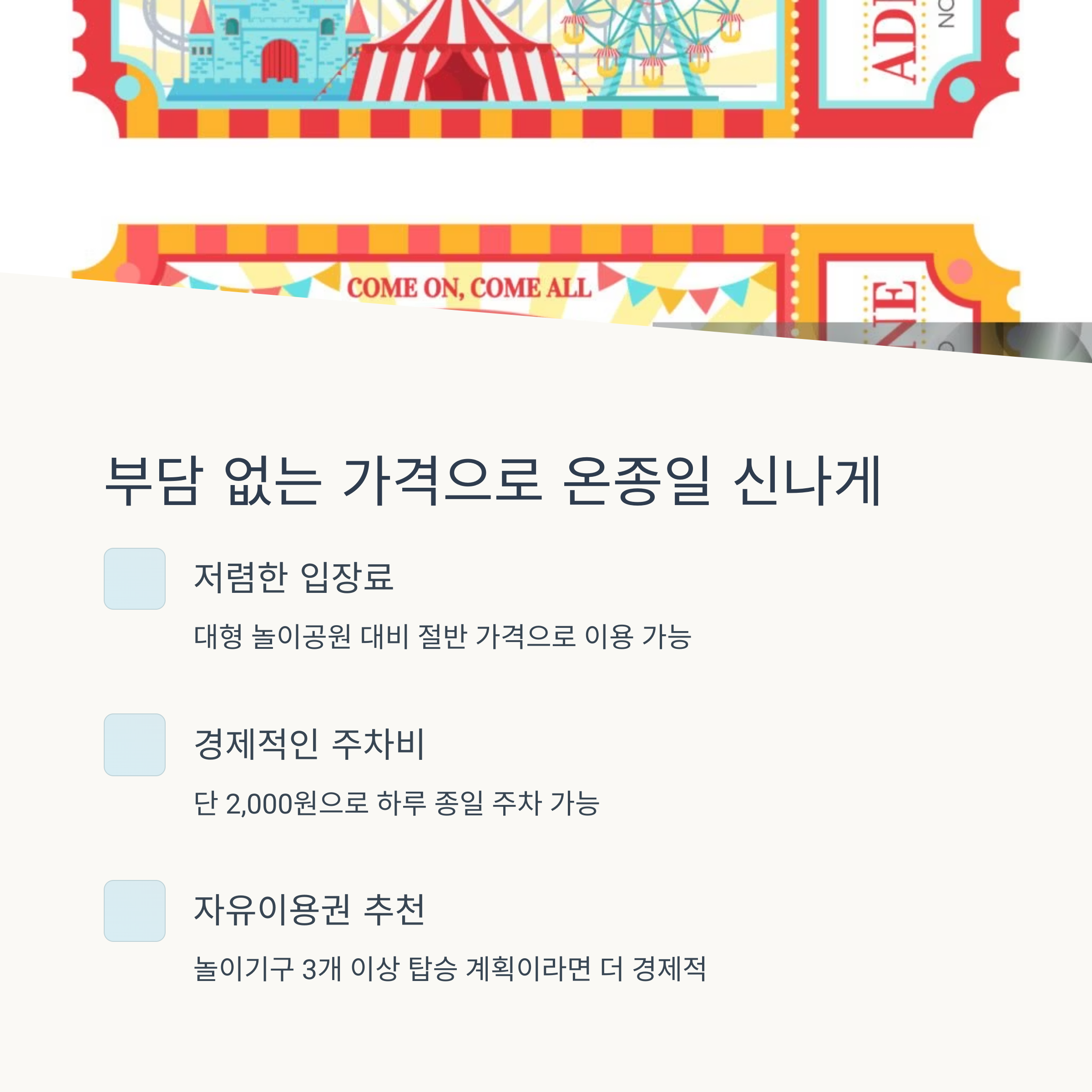 | 가족 놀이공원 | 아이와 함께할 수 있는 다양한 놀이기구 |