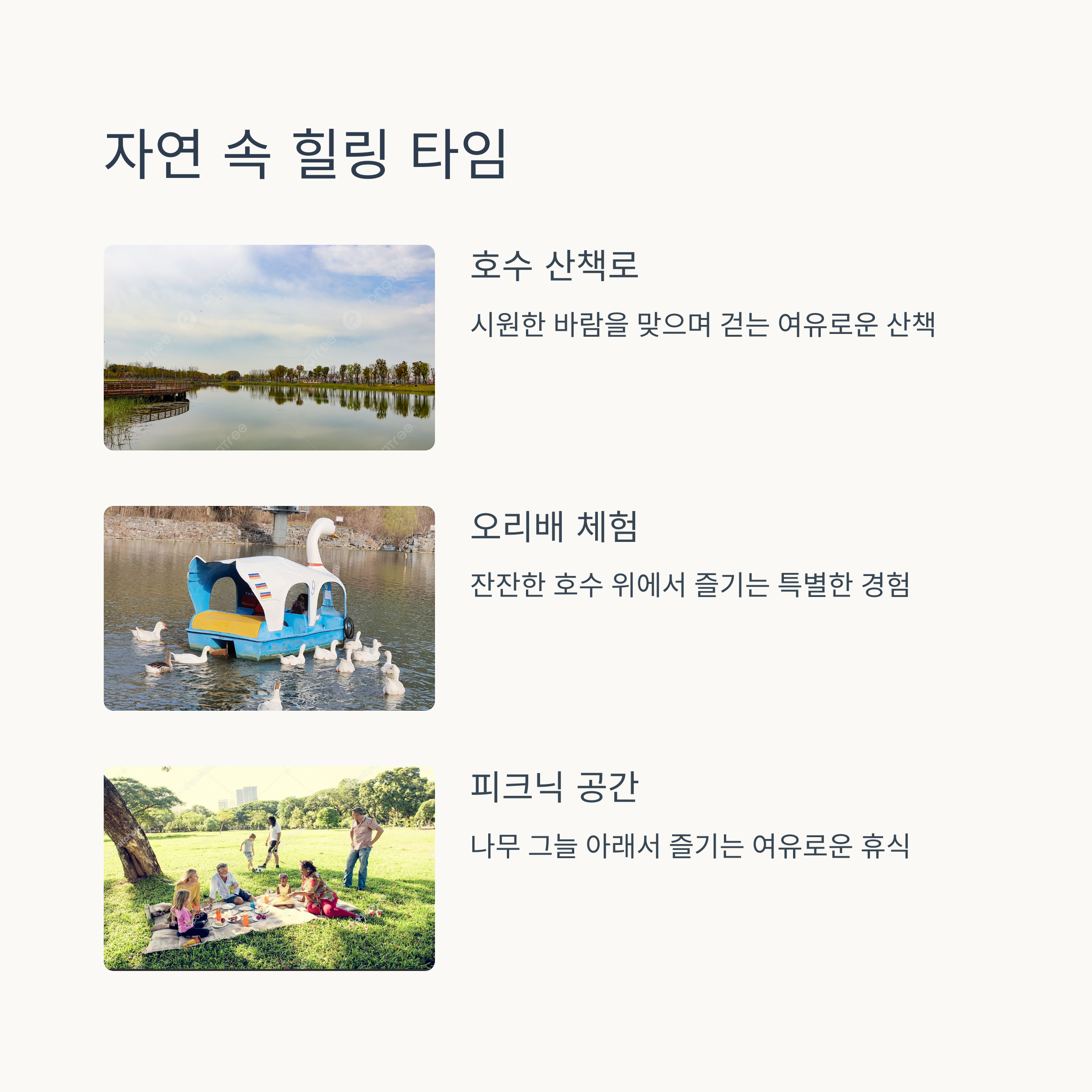 | 자연 속 힐링 | 피크닉과 산책, 오리배로 여유로운 하루 완성 |