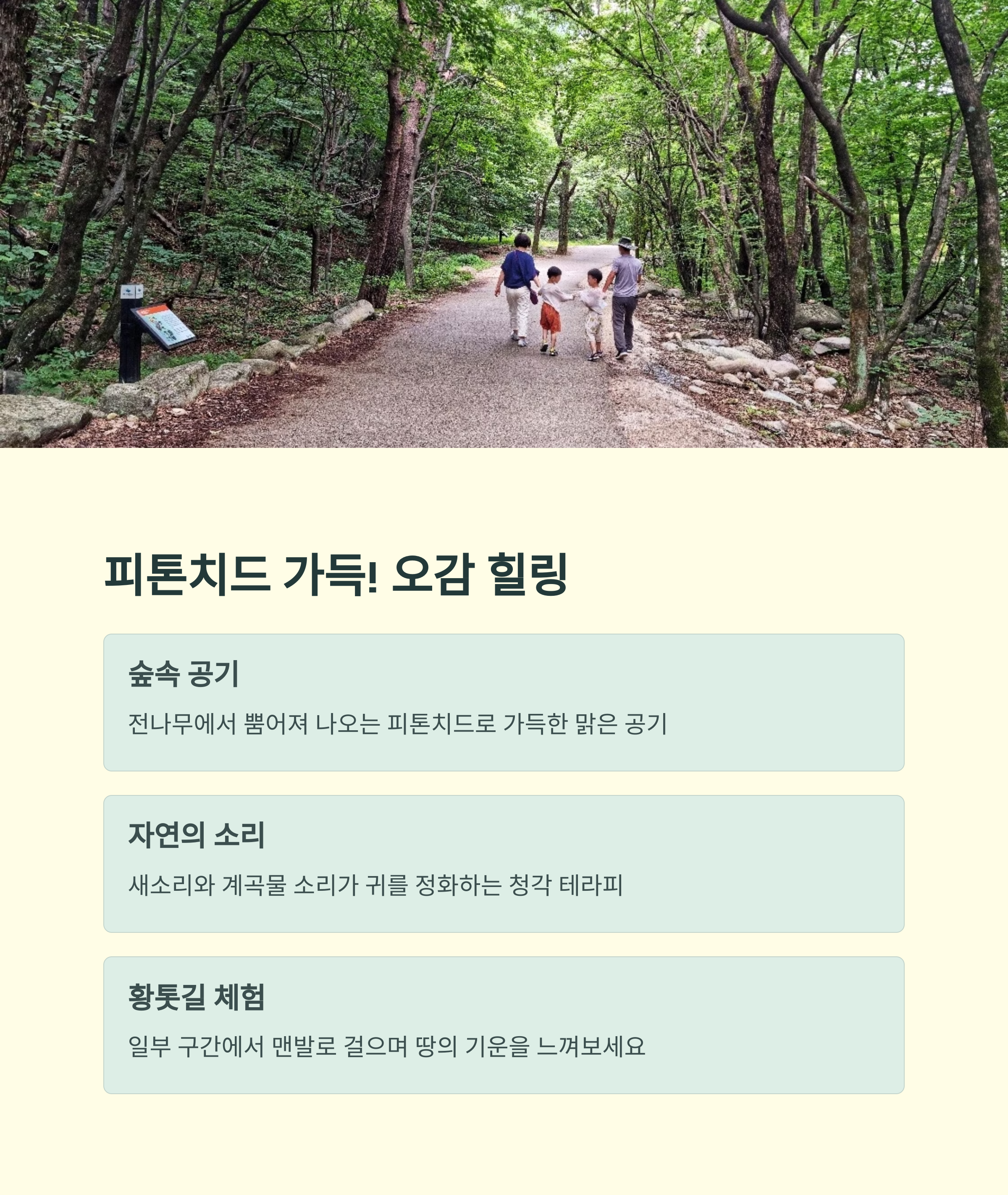 전나무숲길에서 가장 좋았던 시간대나 풍경, 추천 포토존이 있다면 댓글로 나눠주세요. 산책 계획 중인 분들에게 실질적인 도움이 됩니다!