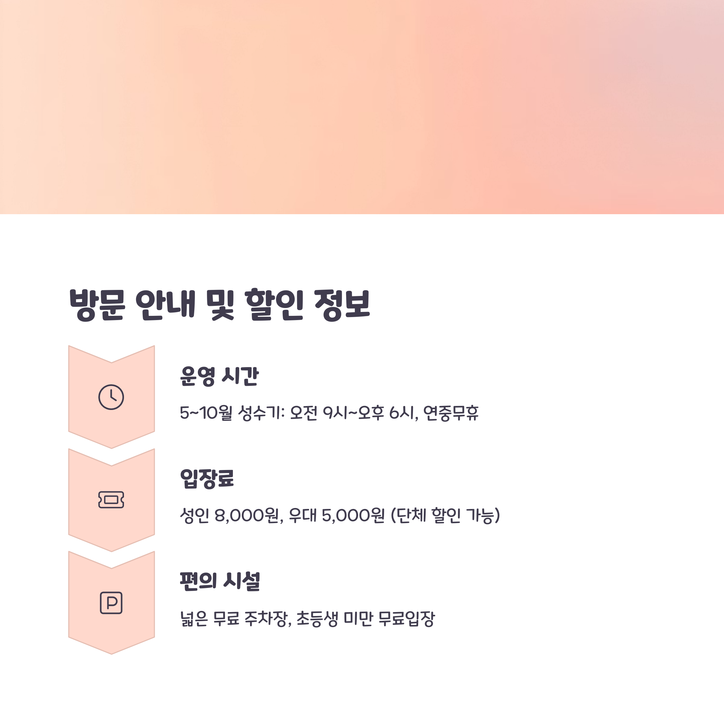| 추천 포인트 | 핑크빛 봄꽃 산책, 허브체험, 감성 정원 인생샷 |