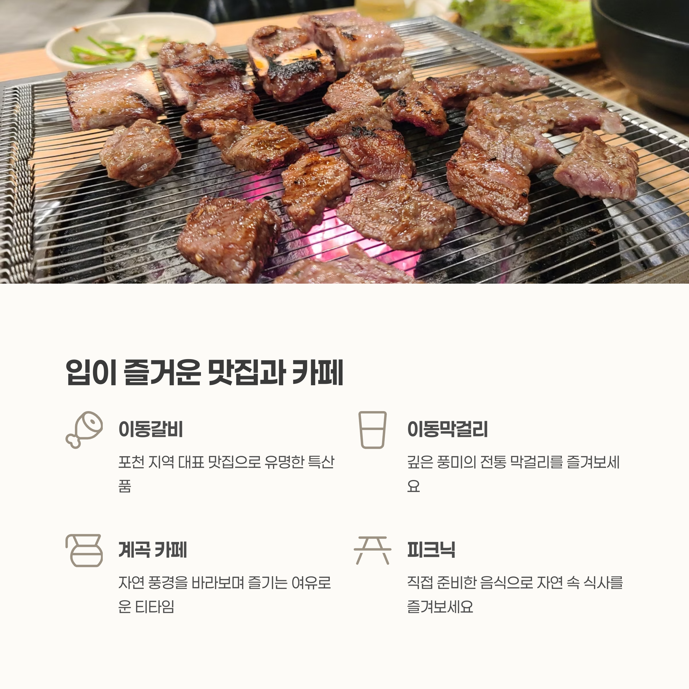 네, 포천아트밸리, 산정호수, 허브아일랜드 등 다양한 관광지와 연계해 하루 나들이 코스로 즐기기 좋습니다.
