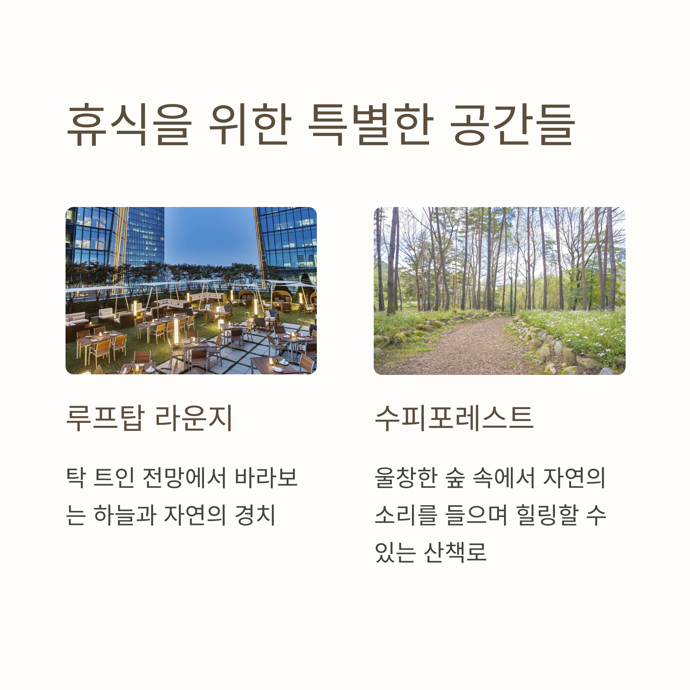 | 수피다이닝 | 셰프 조식, 바비큐 세트, 브런치 등 고퀄리티 다이닝 제공 |