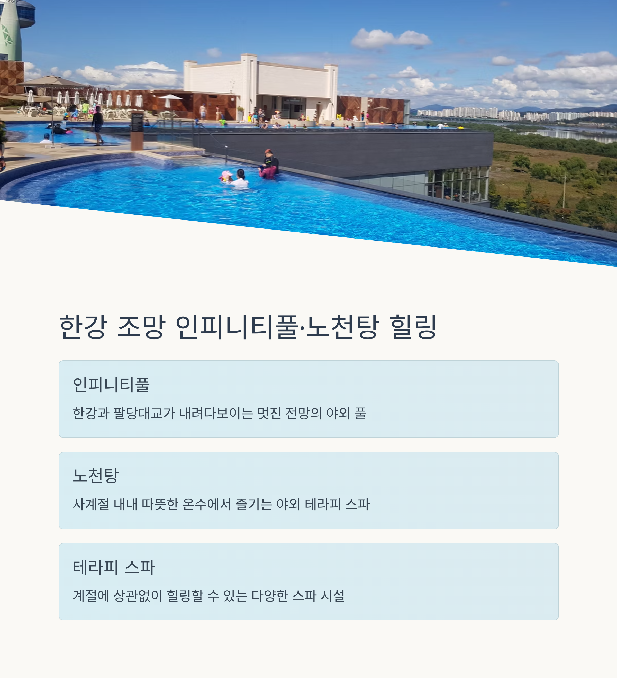 멀티패스로 워터파크 + 찜질스파 동시 이용 가능 무료 주차 가능, 교통·접근성 우수 계절·날씨 상관없이 사계절 실내 힐링 가능