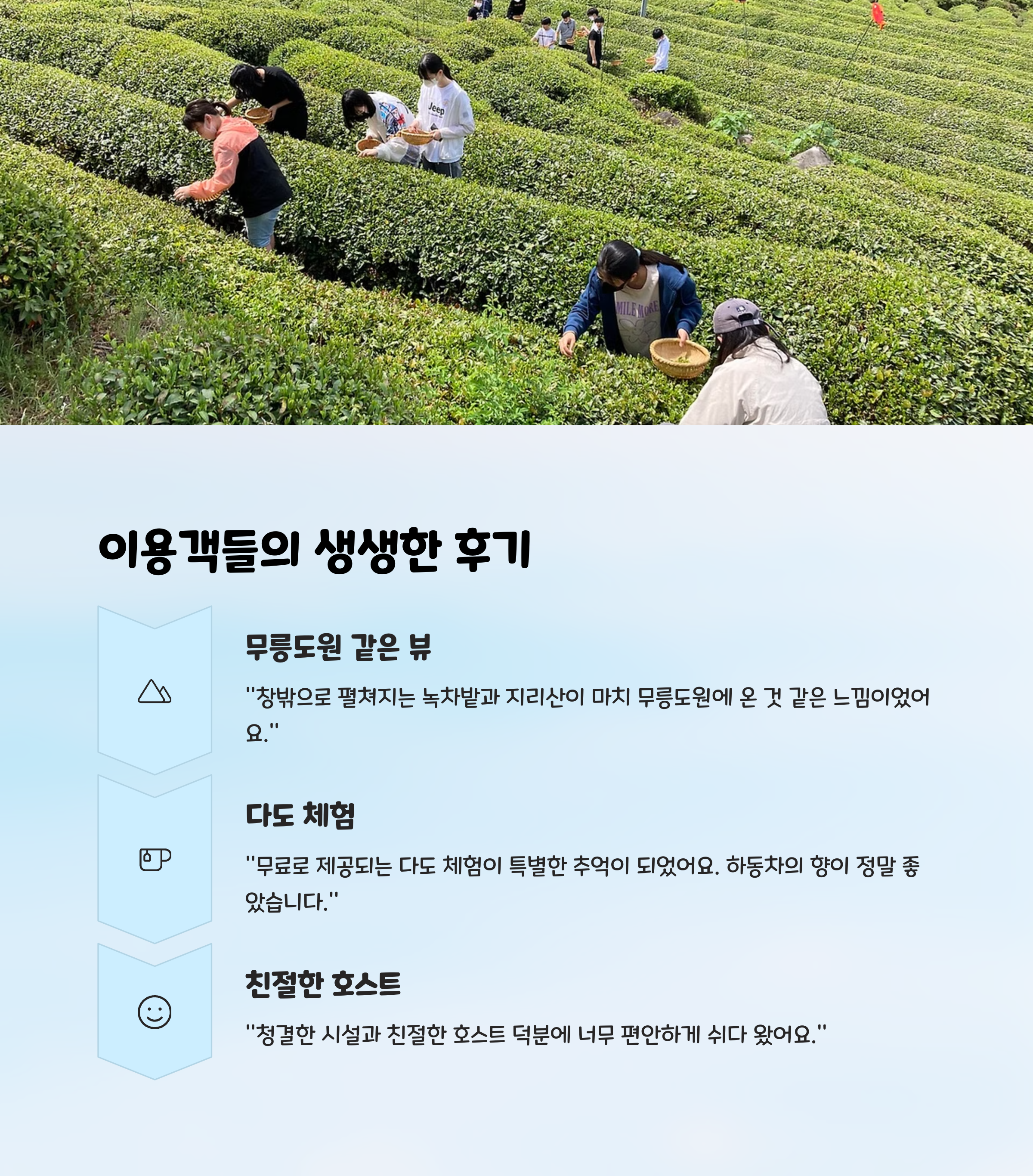 지리산 녹차밭 뷰 한가운데, 차 한잔의 여유를 품은 숙소