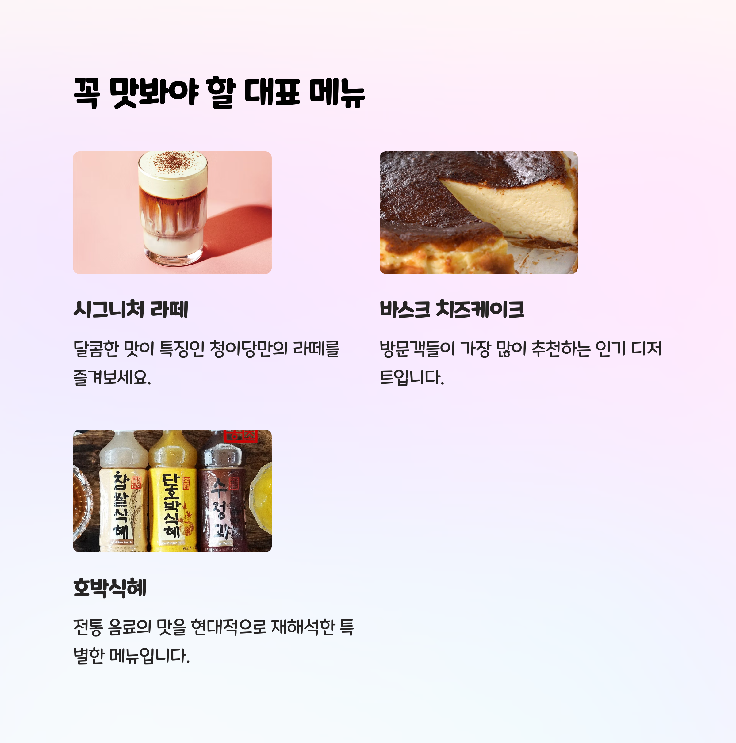 인기 디저트 & 메뉴 감자아님, 홍시케이크, 호박식혜 등 독특한 구성