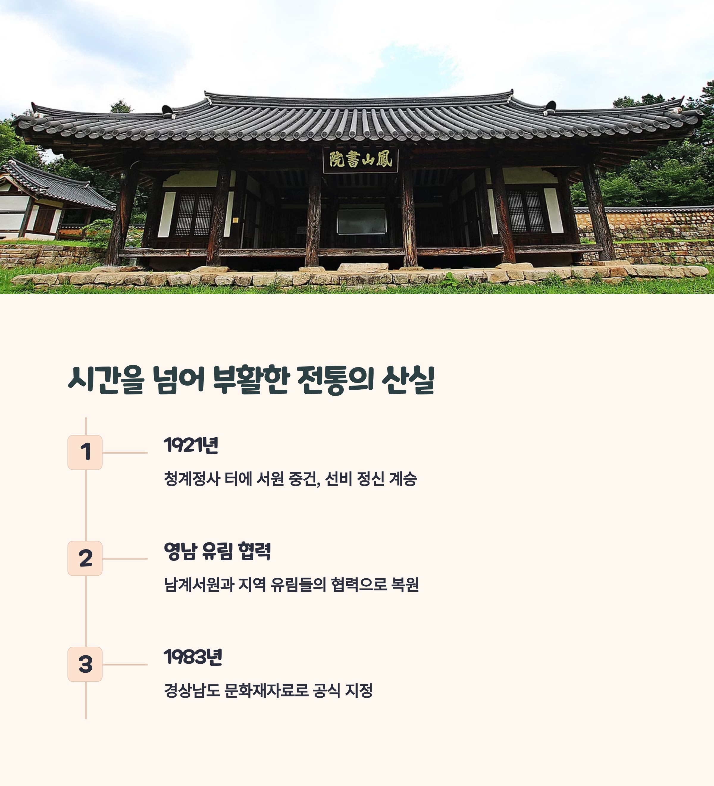 | 청계서원 개방 시간 | 오전 10시~오후 4시(하절기 5시), 무료 관람 가능 |