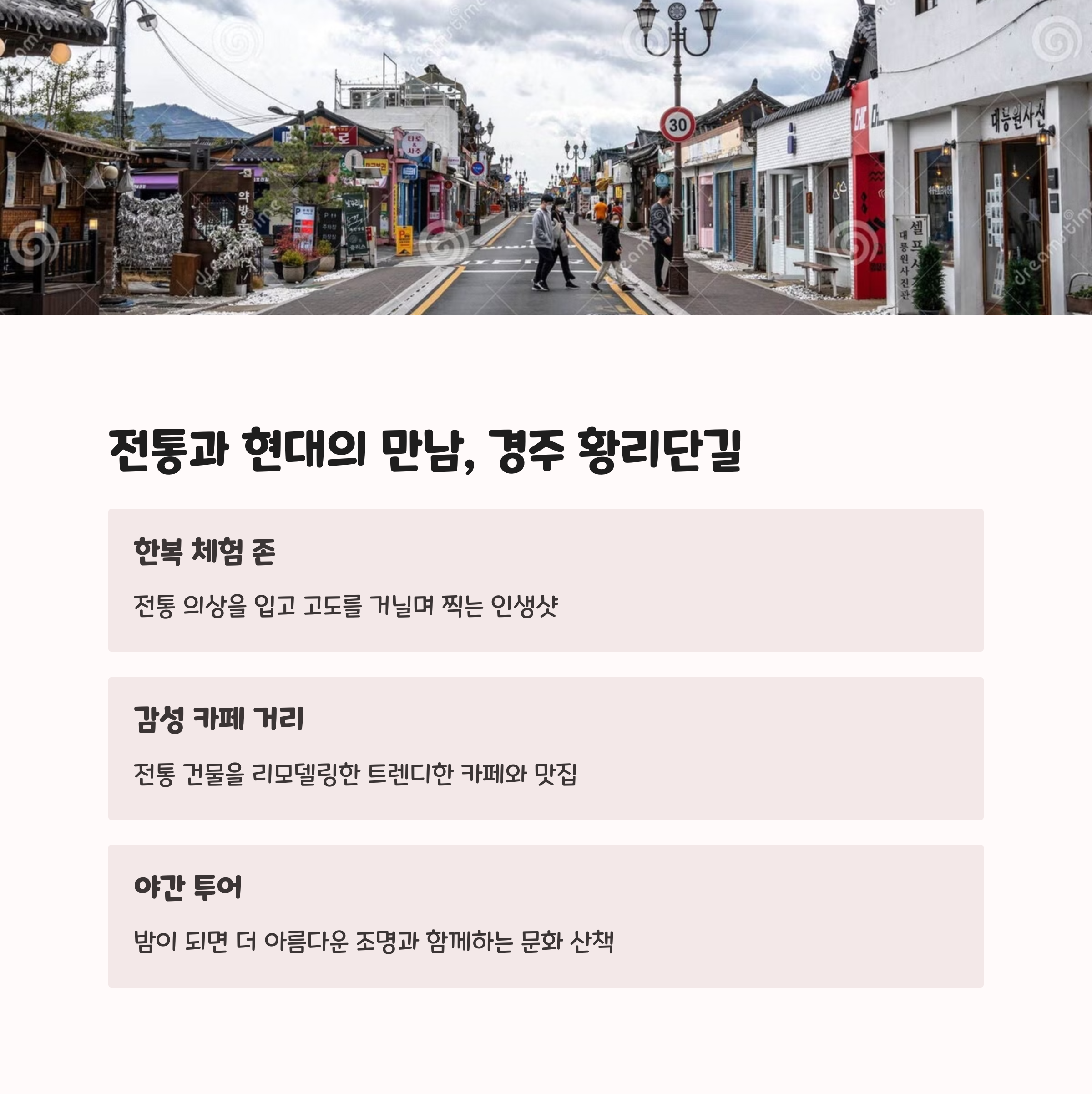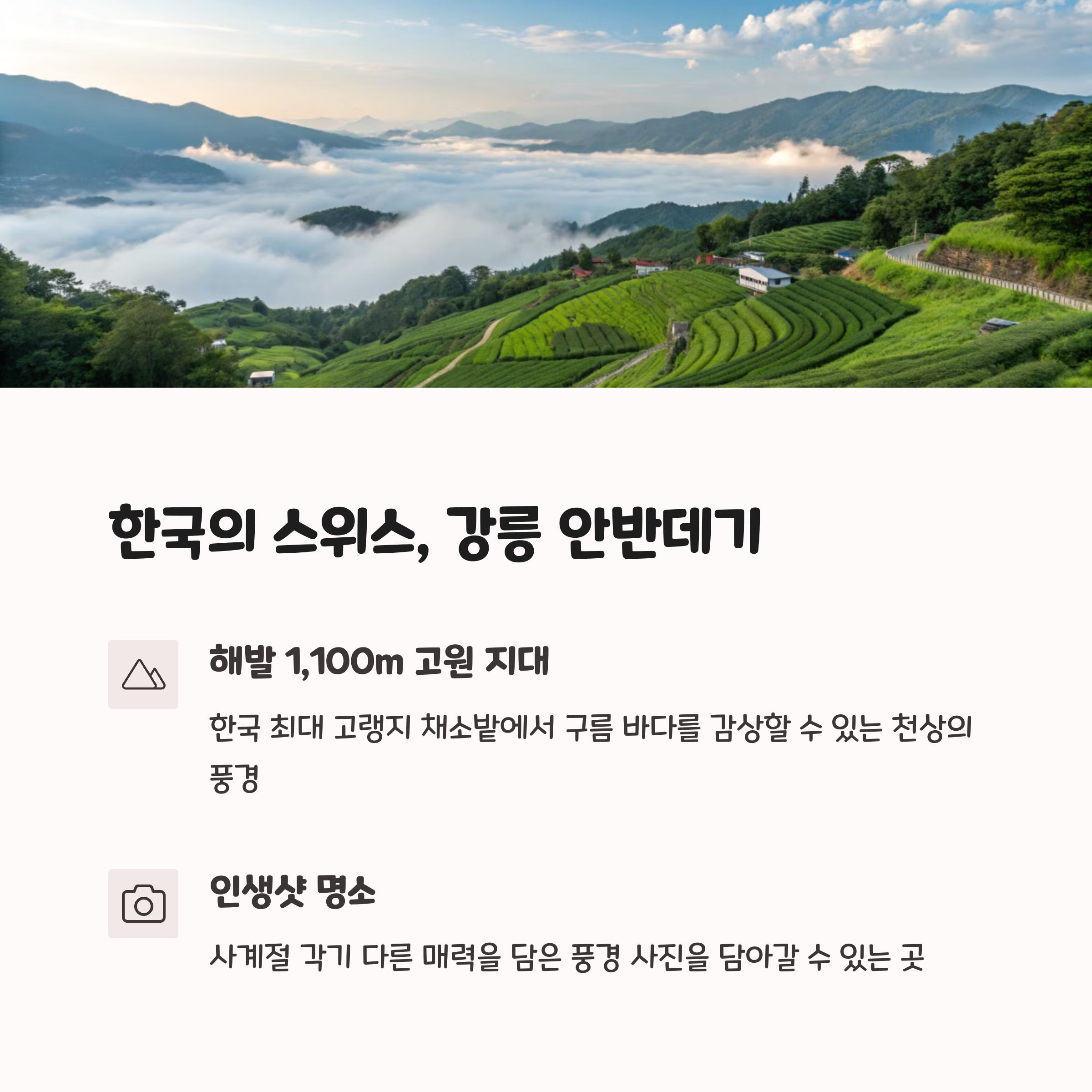 | 강릉, 제주, 담양, 경주, 청주, 원주 | 자연과 사진 명소가 공존하는 공간 | 힐링, 감성, 문화가 모두 있는 여행 |