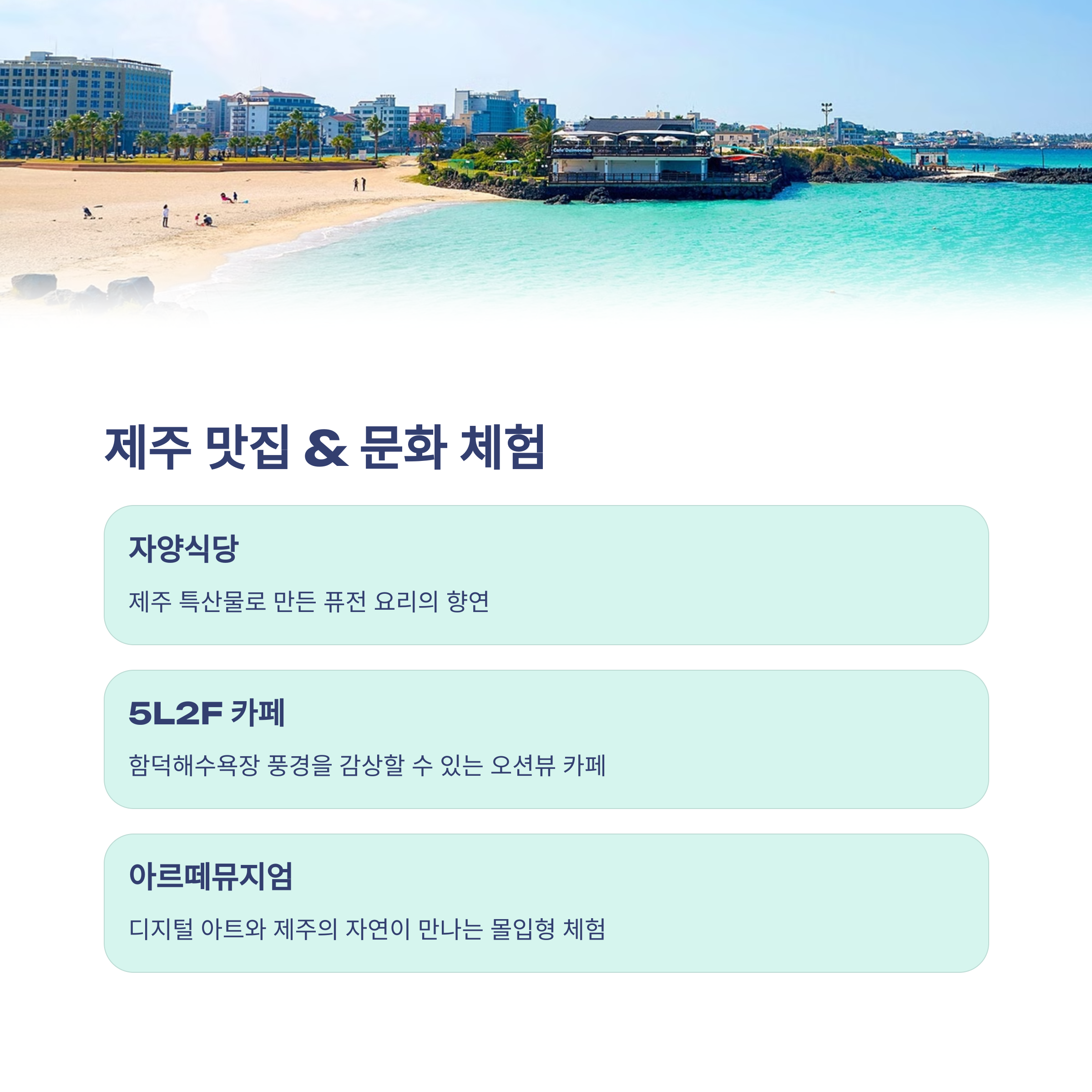 | 추천 식당&카페 | 자양식당, 5L2F카페 등 제주 감성 가득 |
