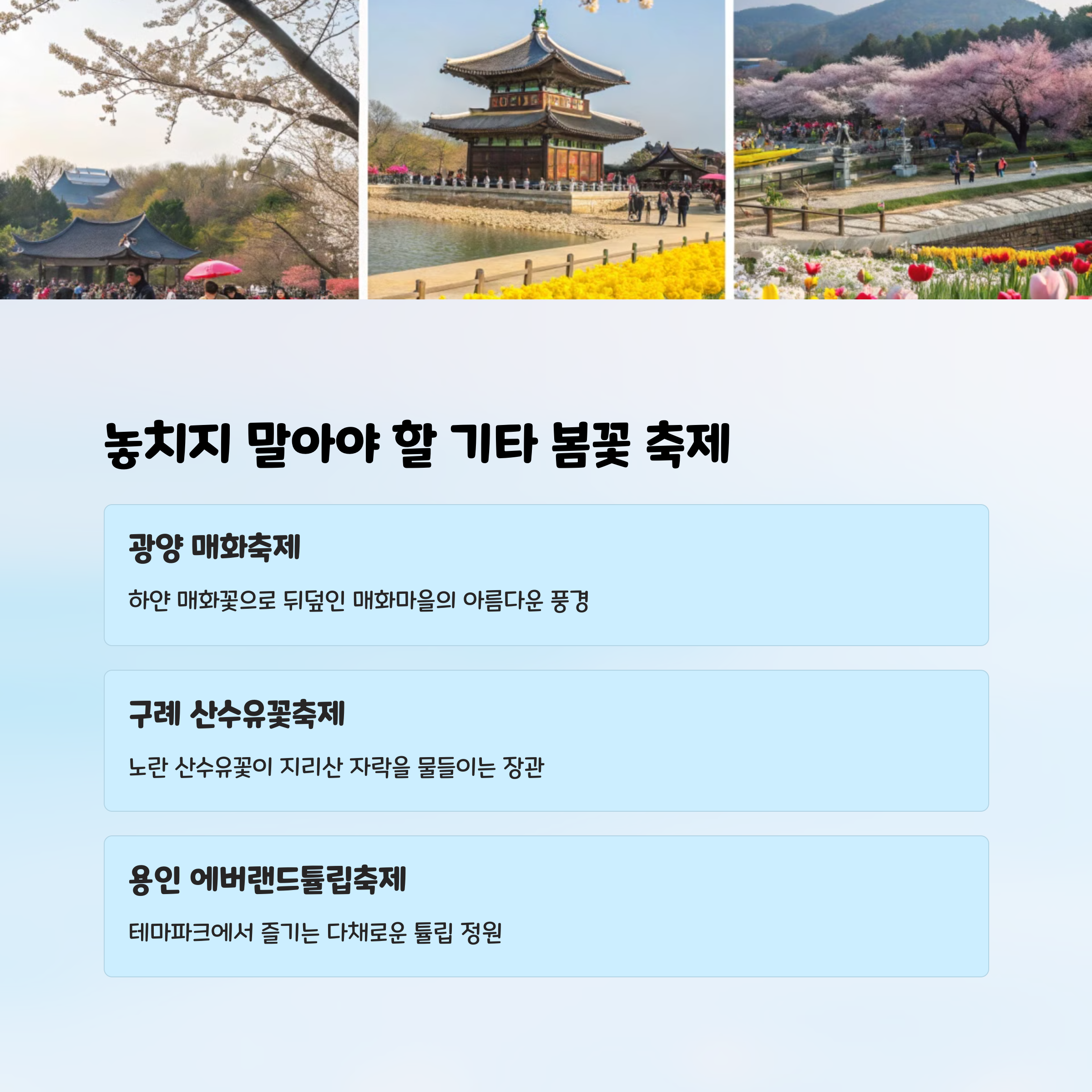 가장 기대되는 봄꽃 축제는 무엇인가요? 여러분의 추천 명소를 댓글로 남겨주세요!