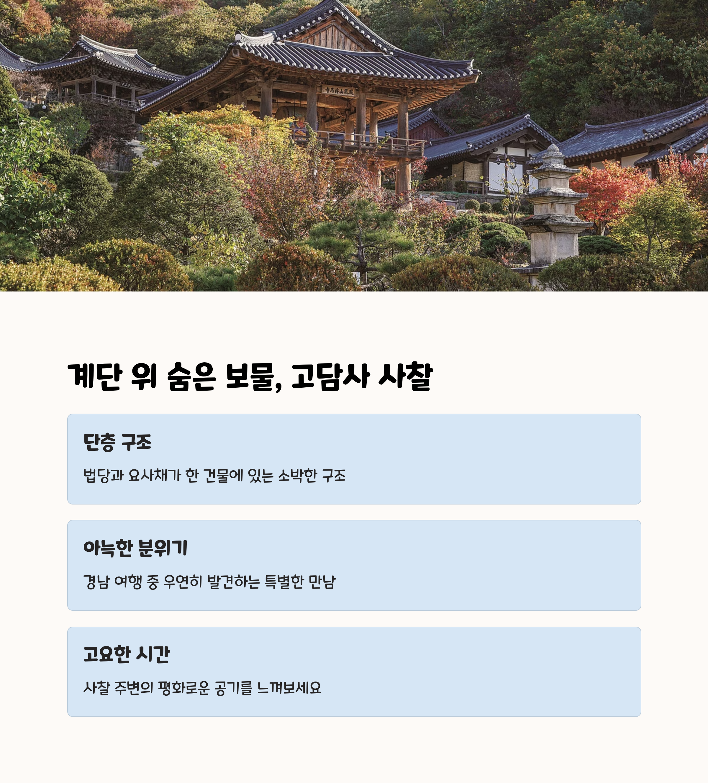 덕전리 마애불을 향하는 길은 주차장에서부터 고담사를 지나 다랭이 논과 고요한 숲길을 따라 이어집니다. 고담사는 소박한 전통사찰이지만, 봄이면 주변이 초록으로 물들어 힐링 감성의 산책길을 완성하죠. 특히 고담사 위 돌계단을 오르는 순간 눈앞에 나타나는 마애불의 모습은 여행의 클라이맥스라 해도 과언이 아닙니다.