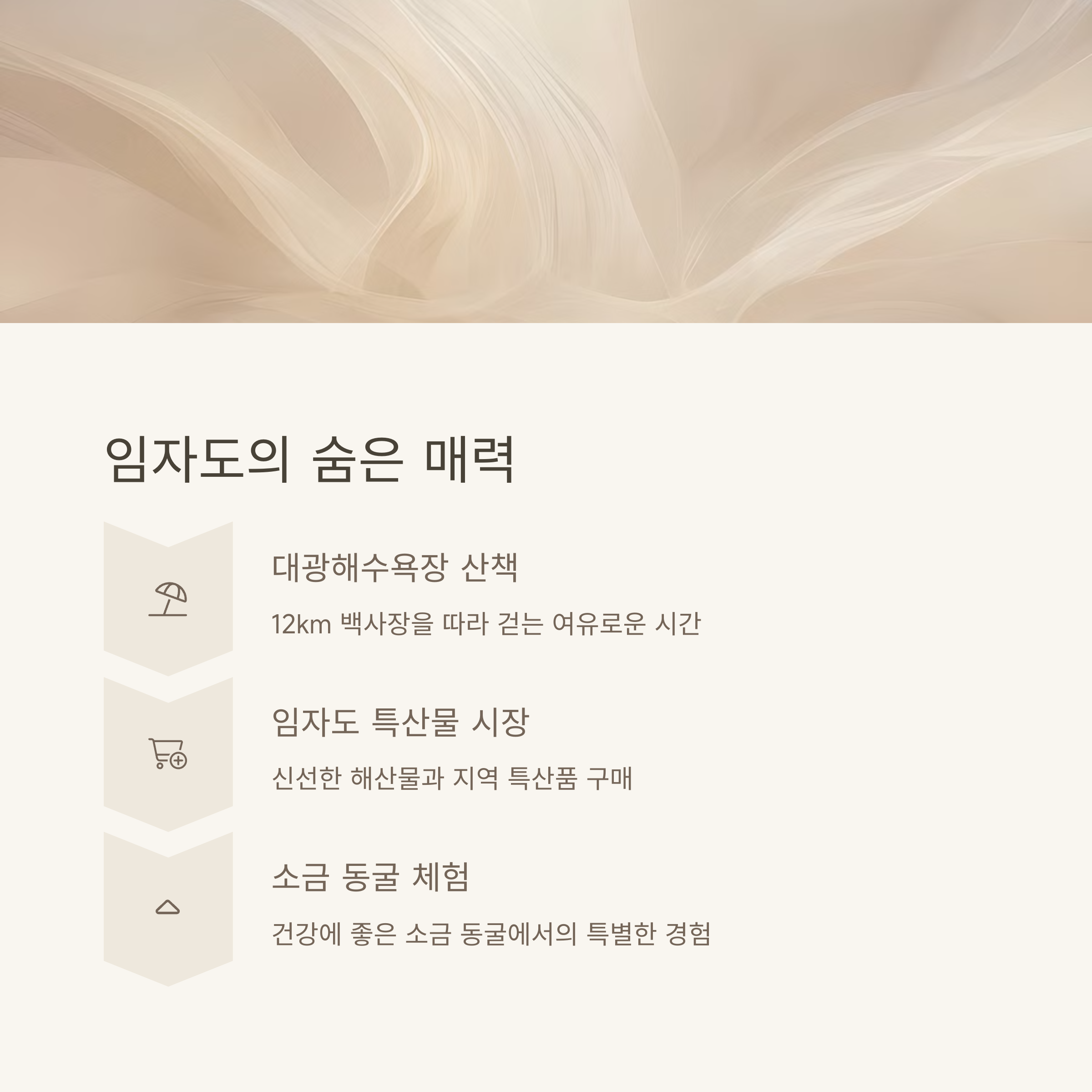 행사장 주변에는 대광해수욕장이 있어 축제와 함께 바닷바람을 맞으며 산책하기에도 좋습니다. 신안의 아름다운 자연과 함께 봄날의 특별한 추억을 만들어보세요.