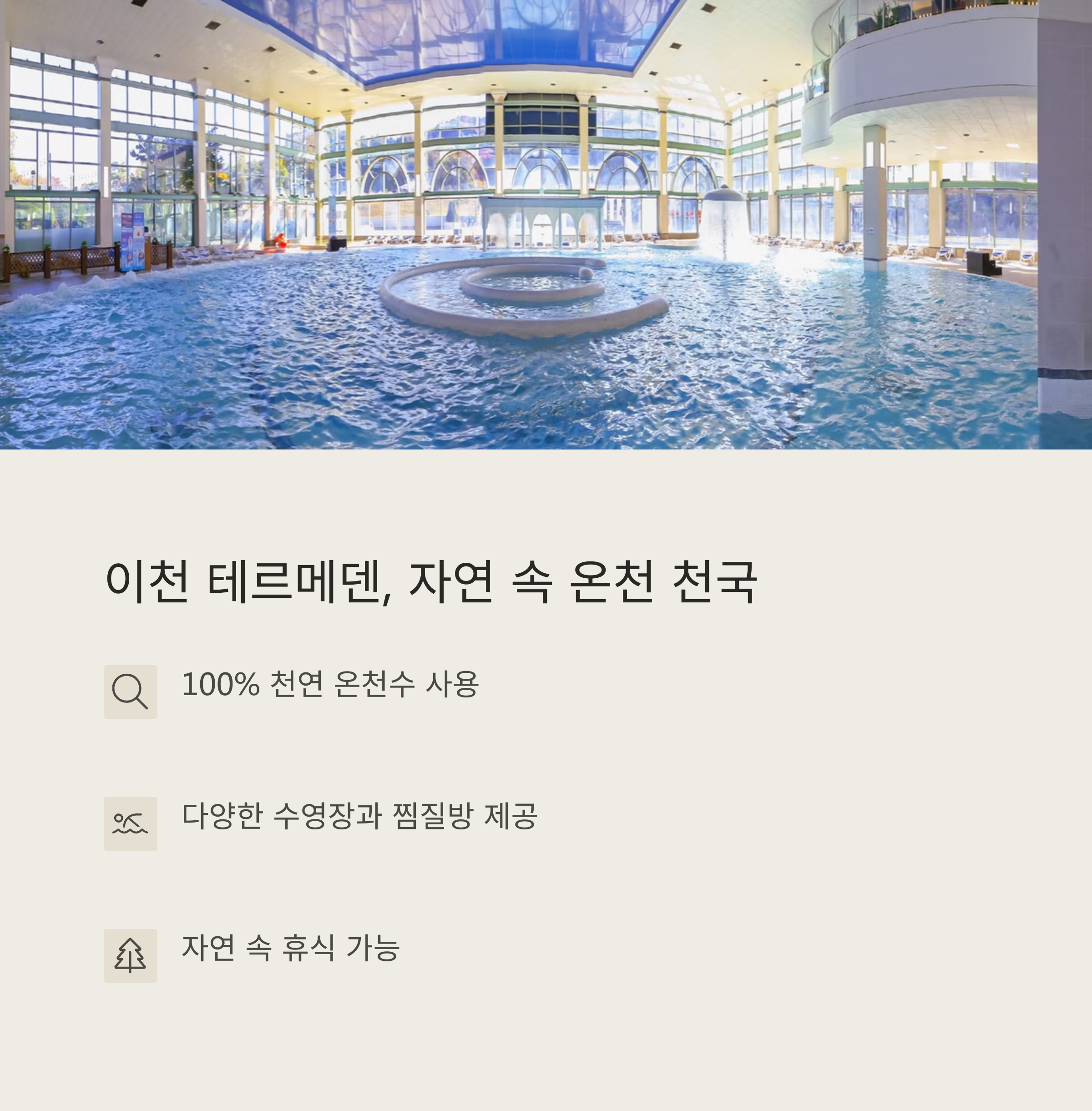 실내 스파 시설로 날씨에 영향 없음 테마별 찜질방 체험으로 재미 더함 실내외 모두 즐길 수 있는 구조