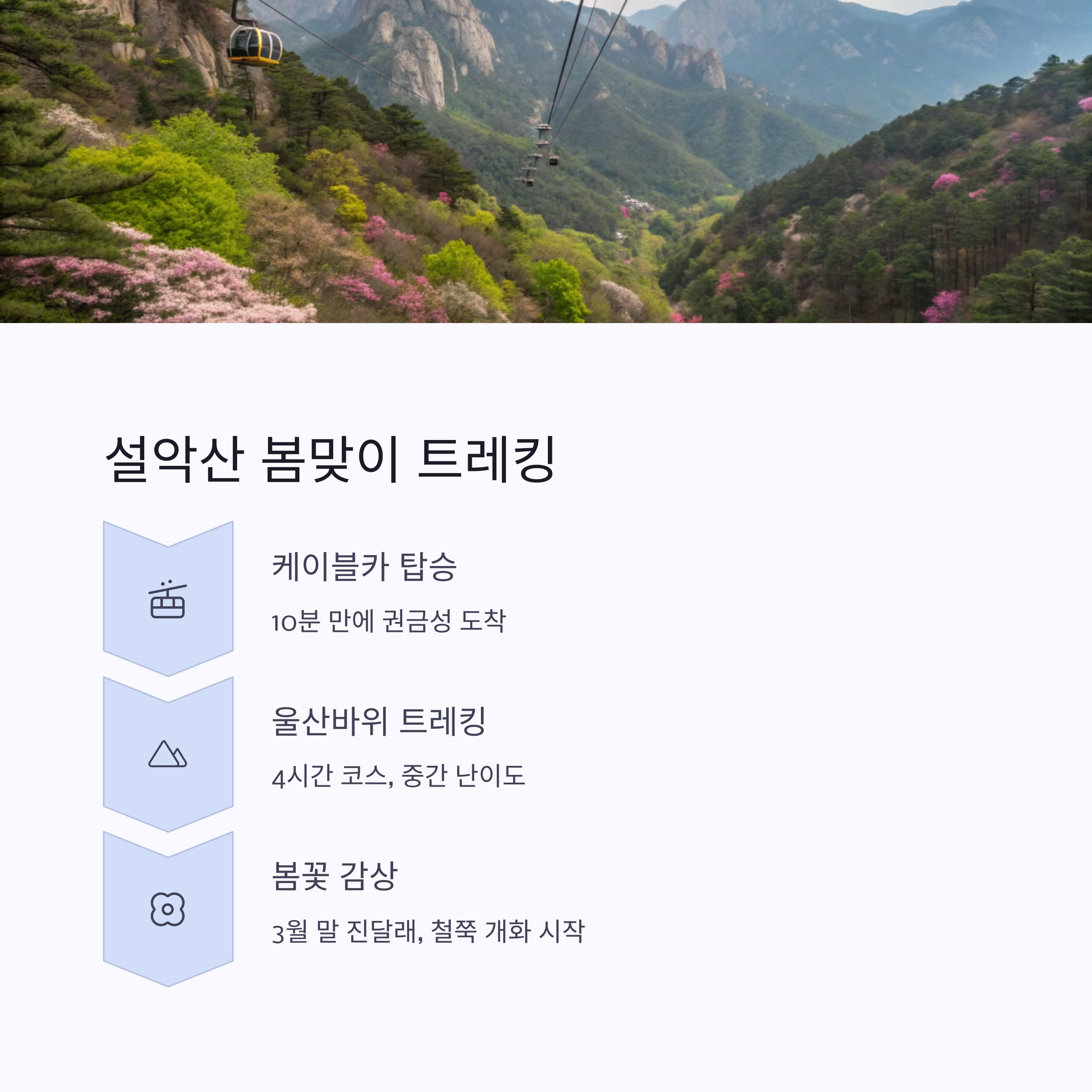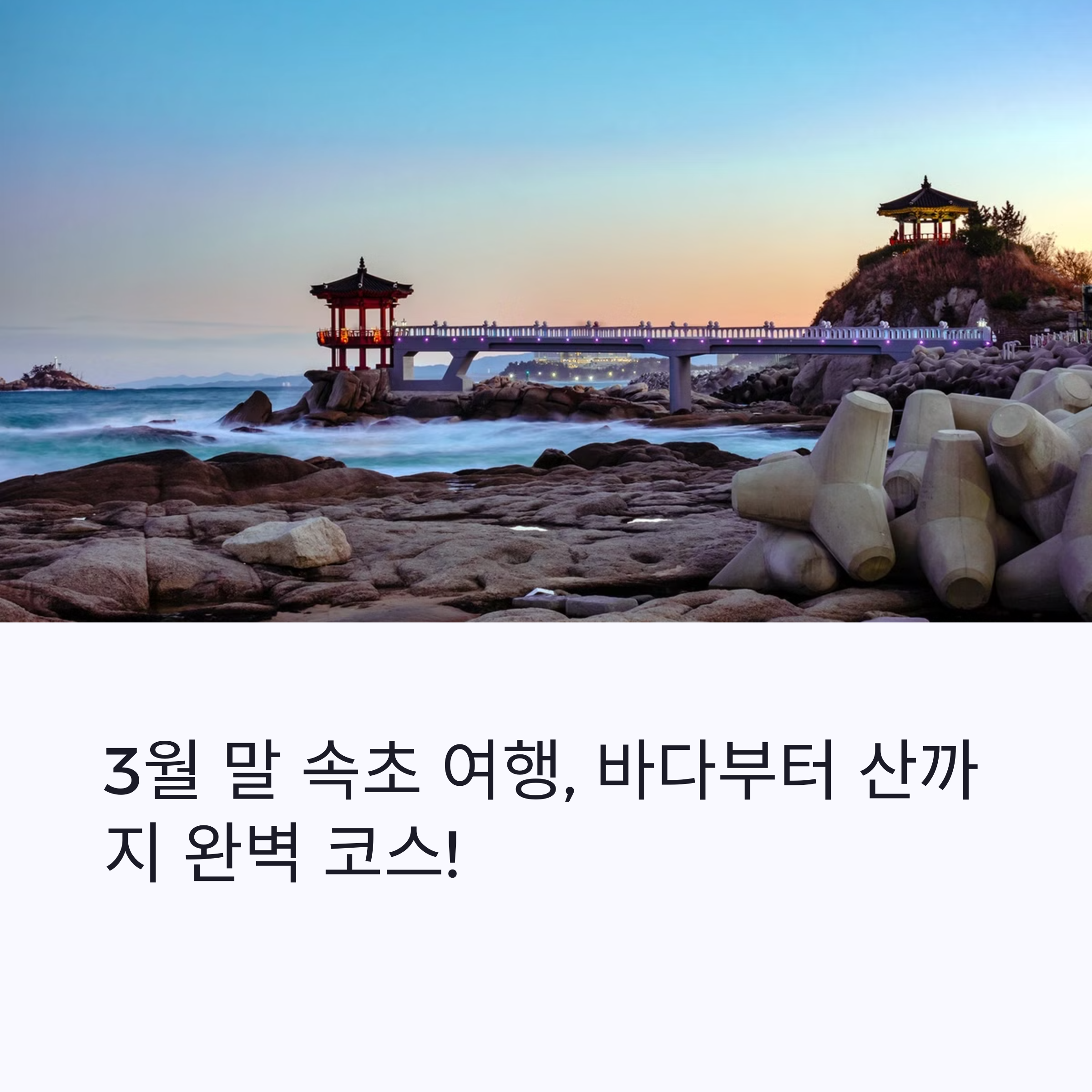 본격적인 봄이 시작되는 3월 말, 여행을 떠나고 싶은 계절이 돌아왔습니다. 특히 강원도의 푸른 바다와 설산이 어우러지는 속초는 이맘때 더욱 특별한 풍경을 선사하는 여행지 중 하나입니다. 짧지만 알찬 여정을 원하신다면 자연과 먹거리, 그리고 감성적인 포토스팟까지 모두 아우른 속초 여행 코스를 계획해보는 건 어떨까요? 이번 글에서는 속초를 처음 찾는 분들도 쉽게 따라갈 수 있도록 핵심 명소만 쏙쏙 뽑아낸 3월 말 속초 여행 코스를 소개드릴게요. 설렘 가득한 여행을 준비하는 분들께 실질적인 도움이 되는 가이드가 되었으면 합니다. 천천히 스크롤을 내리며 봄날의 속초로 함께 떠나보시죠!