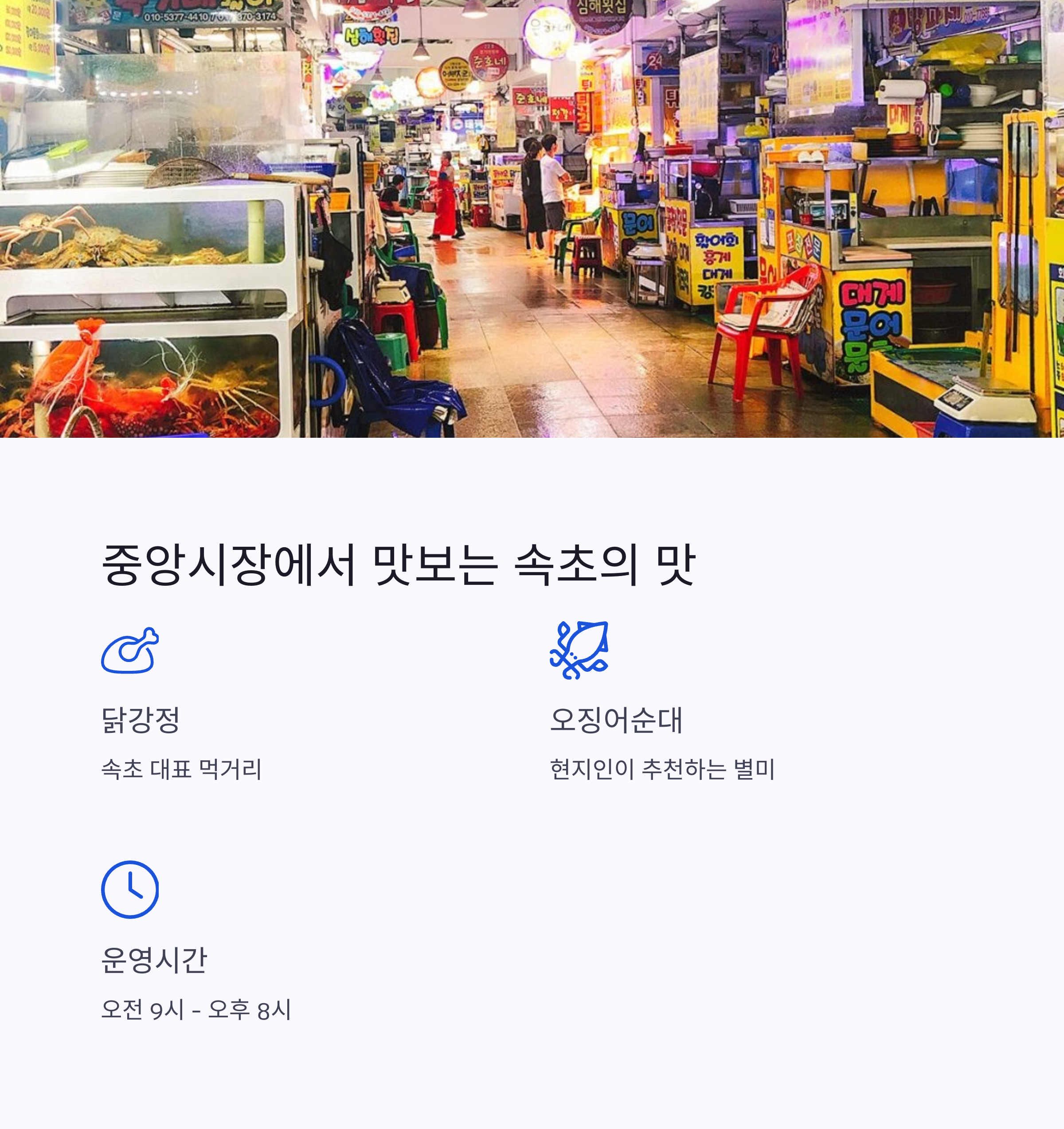| 속초 여행의 특징 | 바다, 산, 시장을 모두 즐길 수 있는 종합 여행지 |