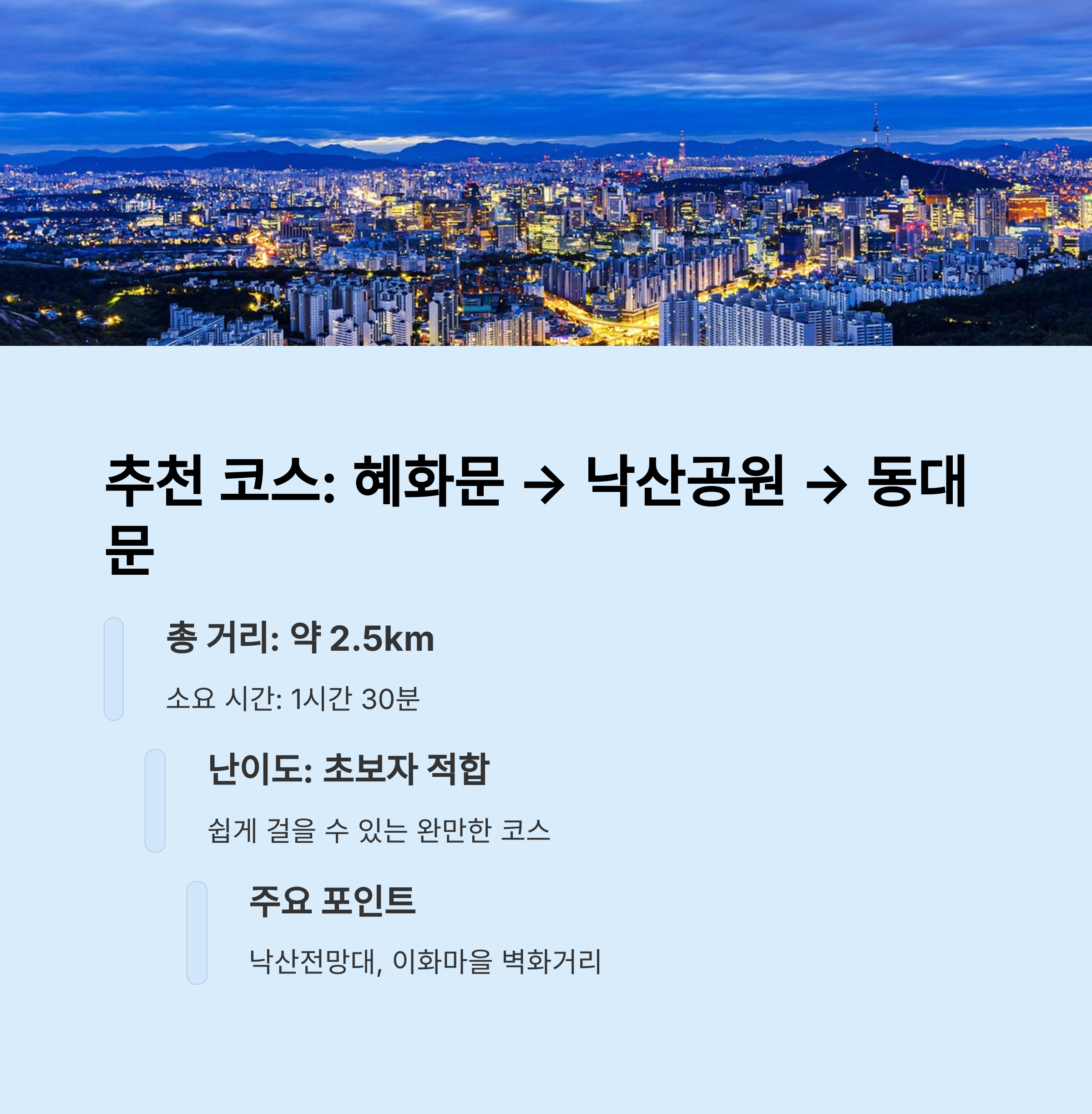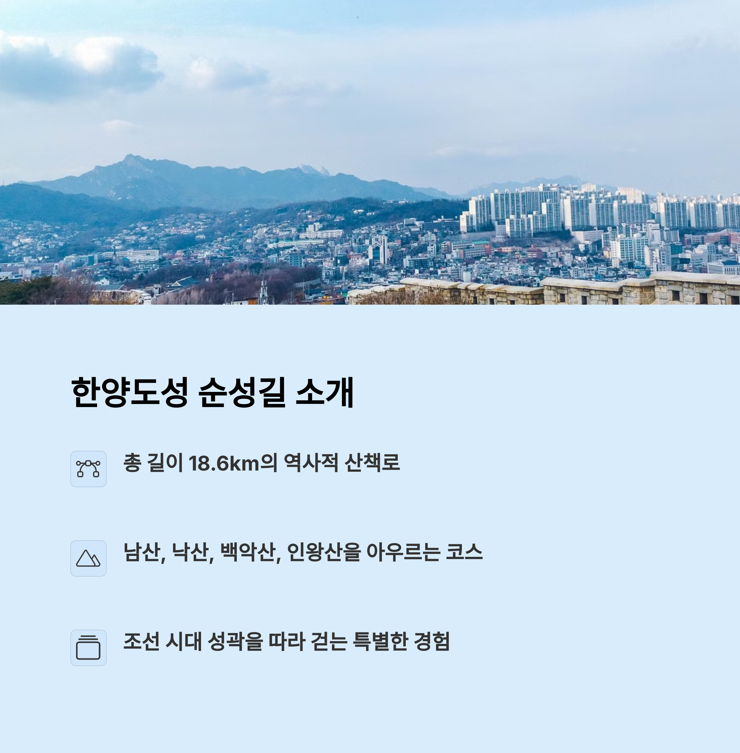 북악산 코스 | 낙산공원 산책 | 서울 성곽길 |
