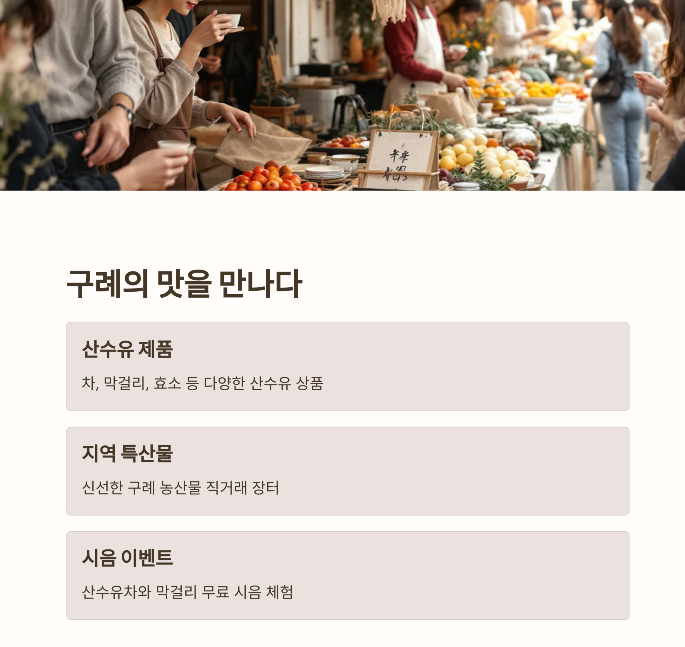축제에서는 단순히 꽃을 감상하는 것뿐만 아니라, 전통놀이 체험, 지역 특산물 시식 등 다양한 프로그램도 운영됩니다. 특히, 산수유 열매로 만든 건강 음료와 전통 음식은 방문객들에게 특별한 맛과 경험을 선사합니다.