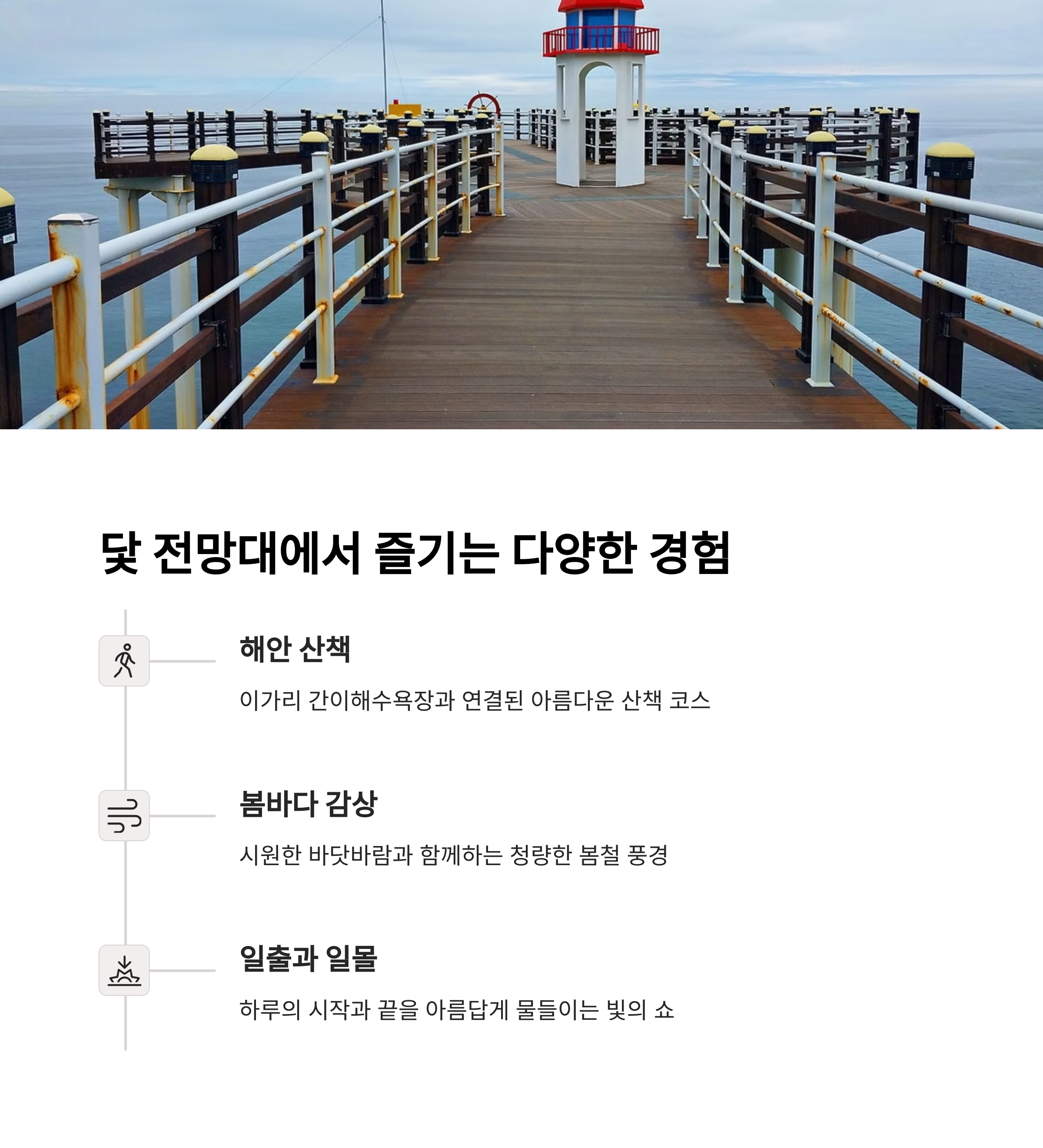 | 위치 및 구조 | 포항 이가리 해변, 길이 102m·높이 10m 닻 형 전망대 |