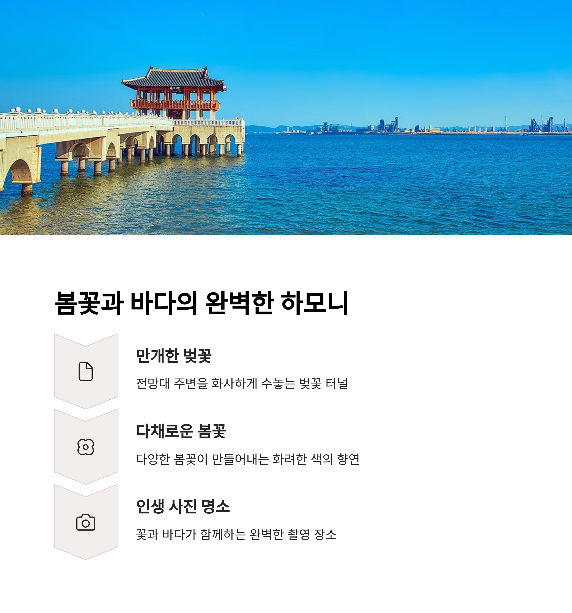 동해의 푸른 물결과 봄꽃이 어우러진 전망 포인트