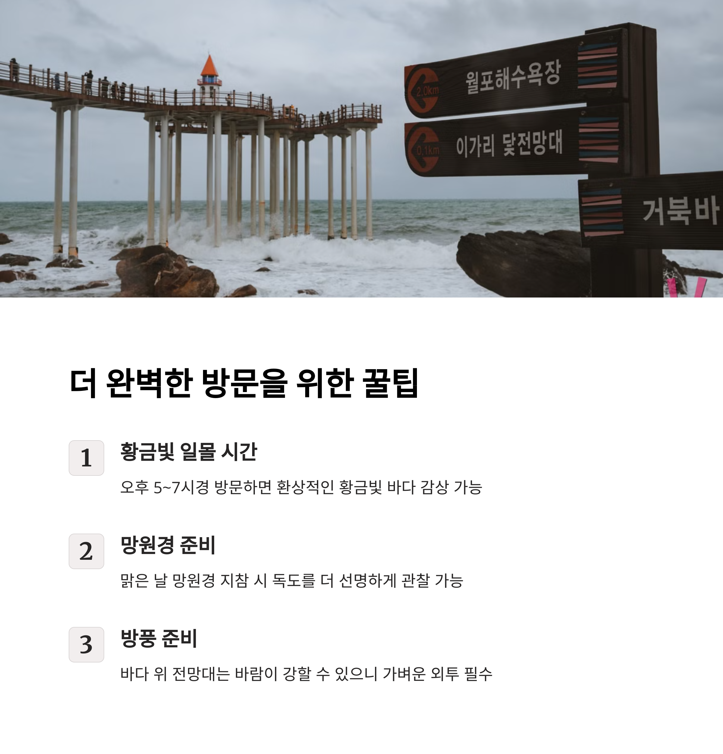 | 인생샷 포토존 | 해변 산책과 카페 투어 | 연중무휴 무료 개방 |