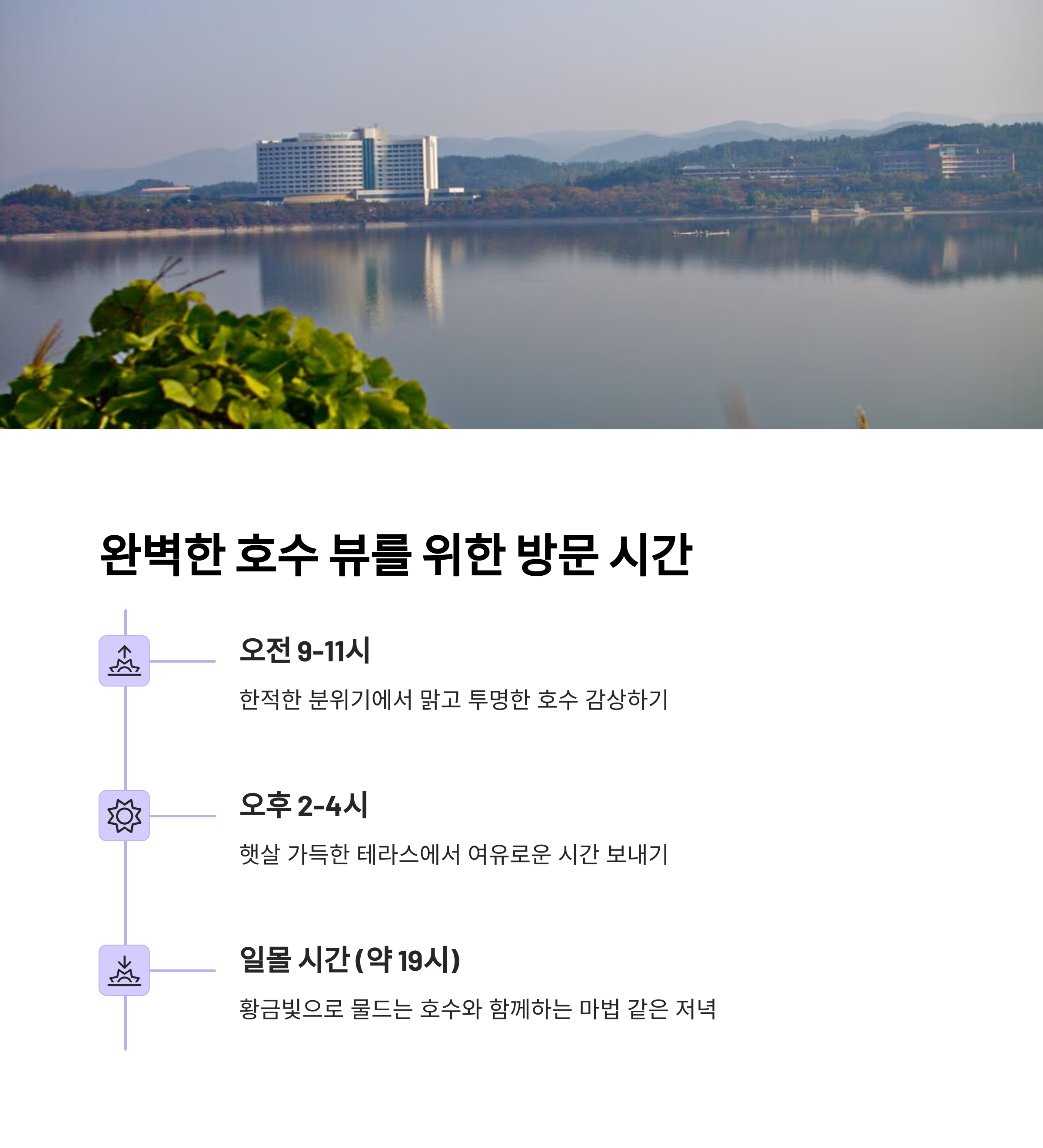 | 추천 좌석 | 3층 테라스 끝자리, 호수뷰 명당 |