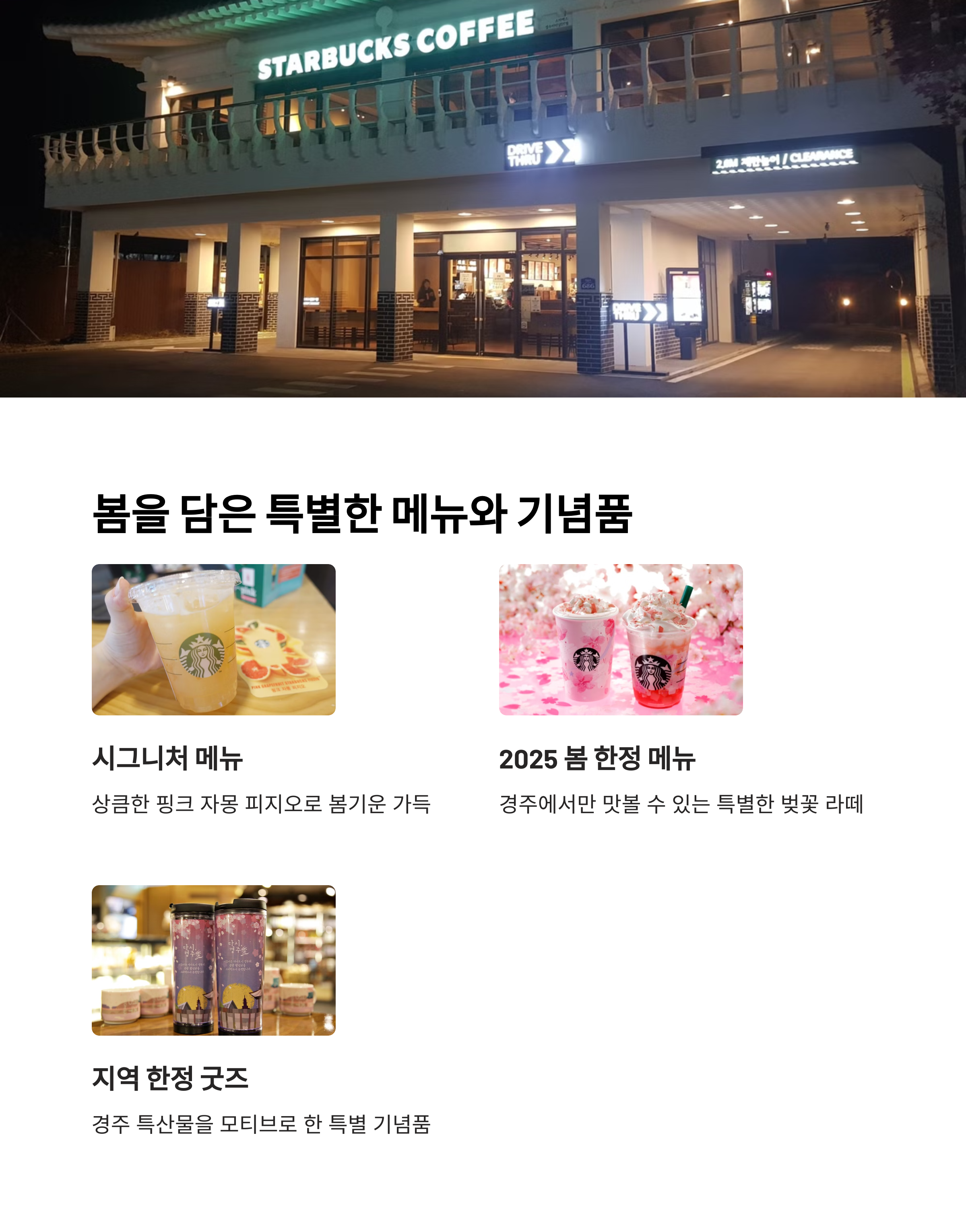 | 벚꽃 시즌에 더욱 아름다운 풍경 | 커피+경주 특산 굿즈까지 즐기기 | 가족·연인과 여유로운 봄 산책 코스 |
