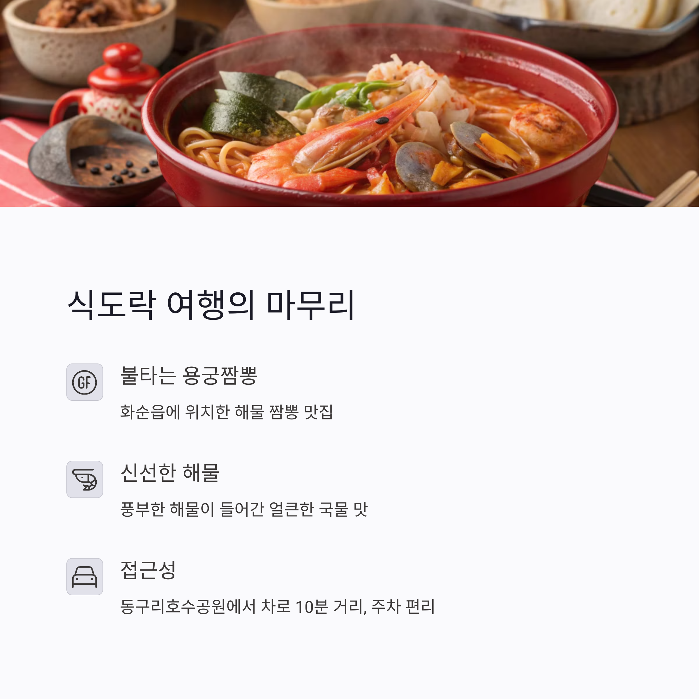 1️⃣ **동구리호수공원 산책**: 벚꽃과 철쭉을 감상하며 호수 둘레길을 걸어보세요. 2️⃣ **근처 맛집 방문**: 화순읍의 '불타는 용궁짬뽕'에서 해물 짬뽕을 맛보세요. 3️⃣ **드라이브 코스 연계**: 화순 백운산이나 담양 메타세쿼이아 길까지 드라이브하며 더 넓은 풍경을 즐겨보세요. 이 코스를 따라 여행하면 광주 근교에서 **최고의 봄날**을 경험할 수 있습니다.