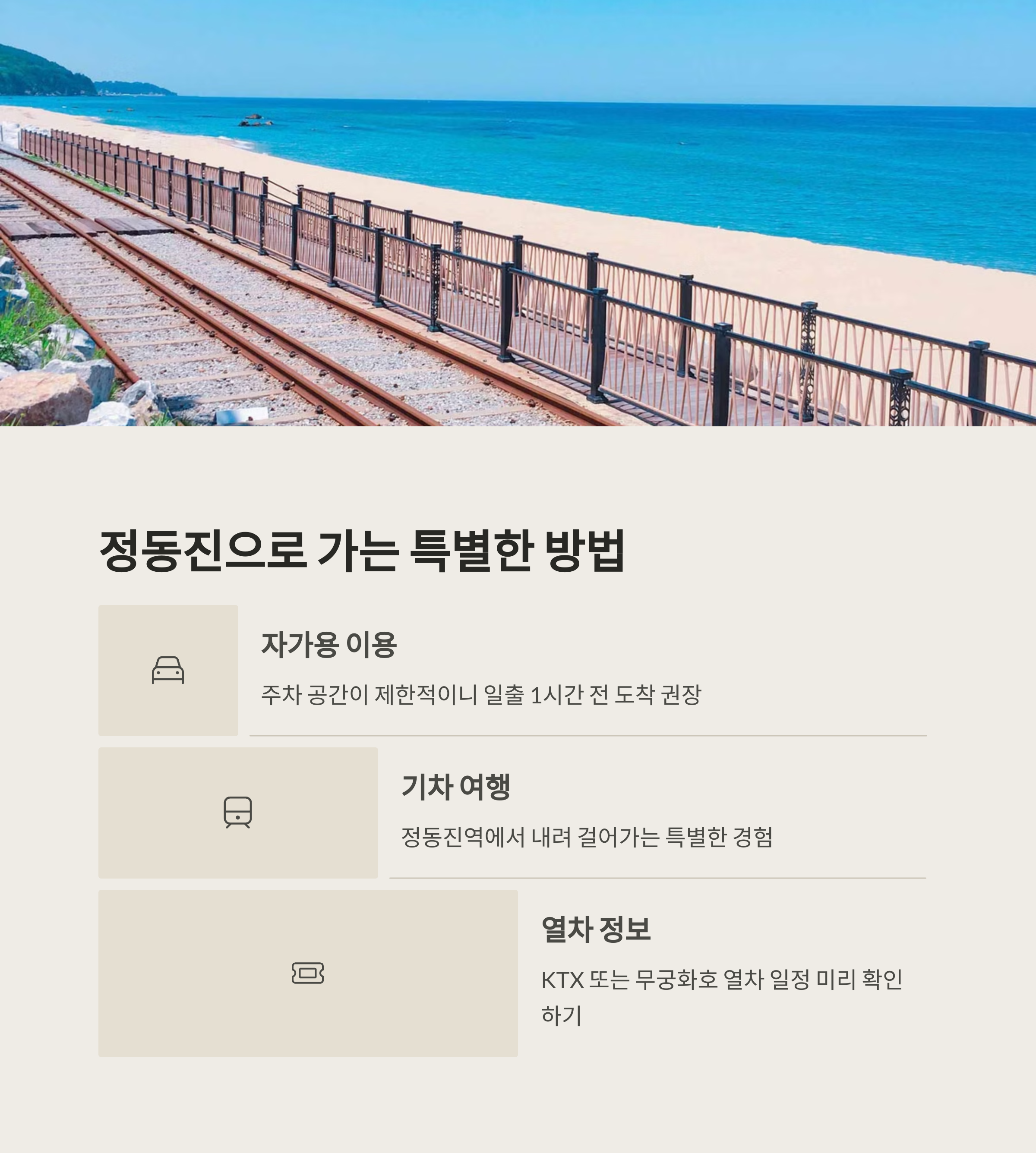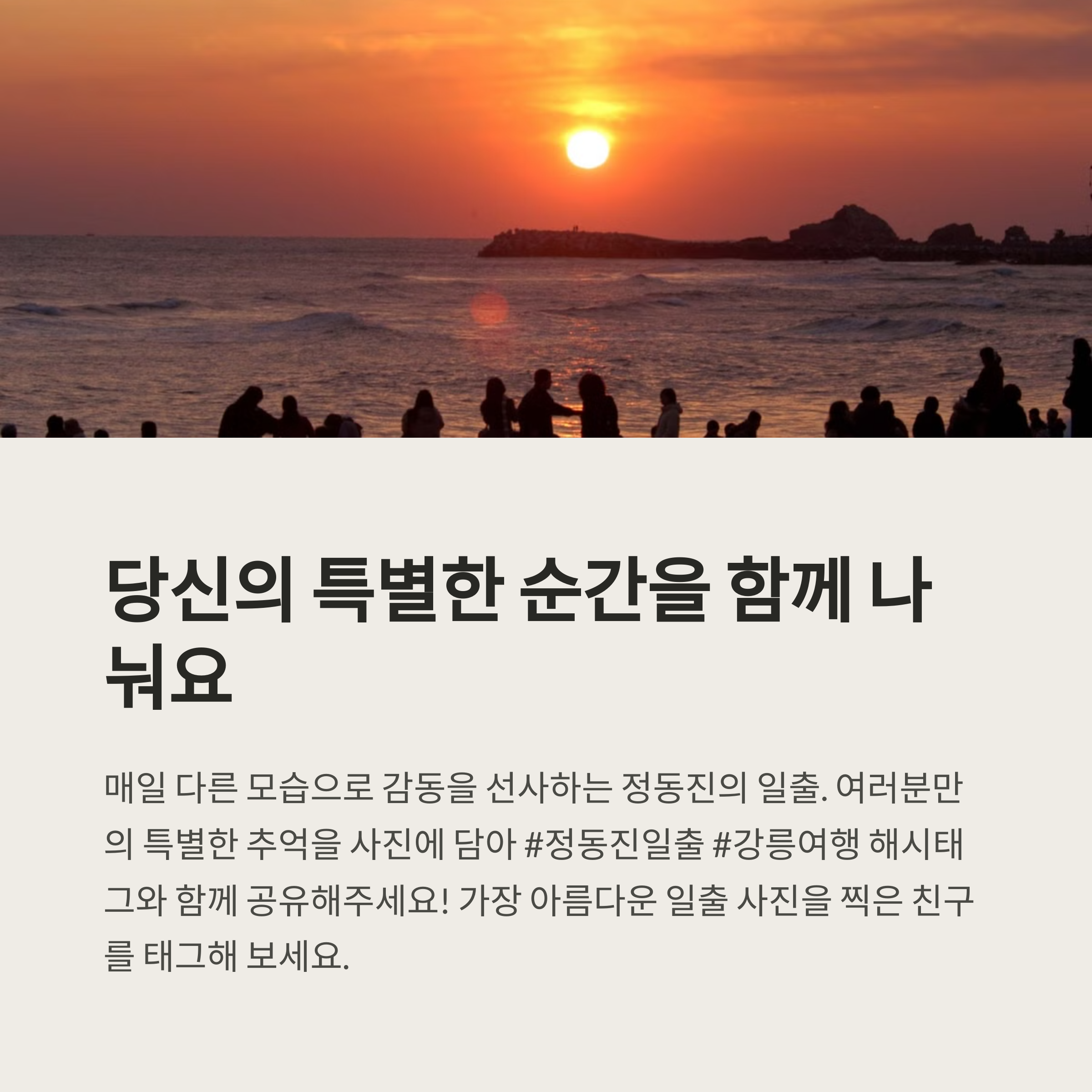 정동진에서의 특별한 일출 경험이나 추천 명소가 있다면 댓글로 나눠주세요. 다양한 의견이 이 글을 읽는 많은 분들께 도움이 될 수 있습니다.
