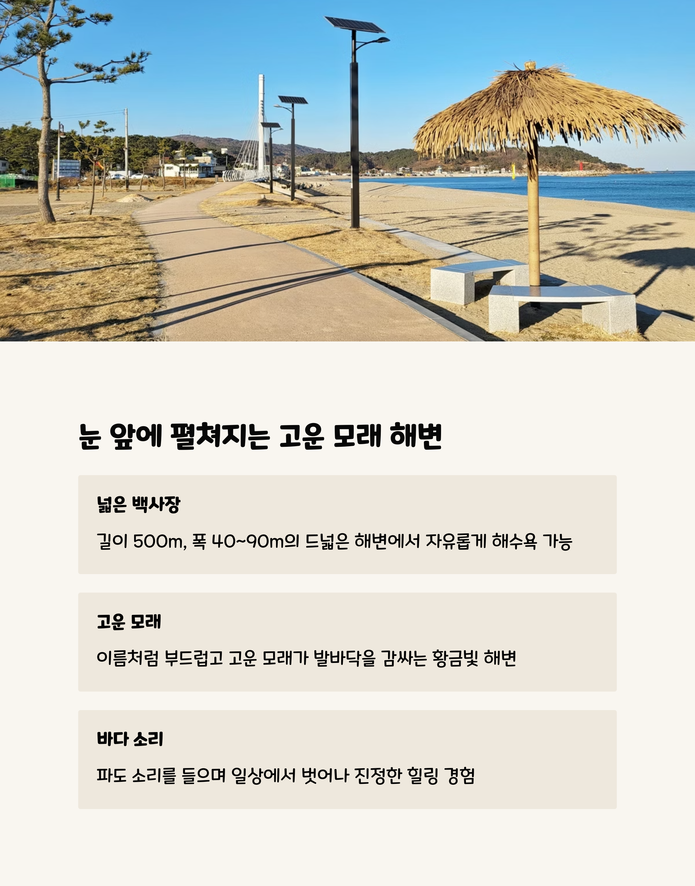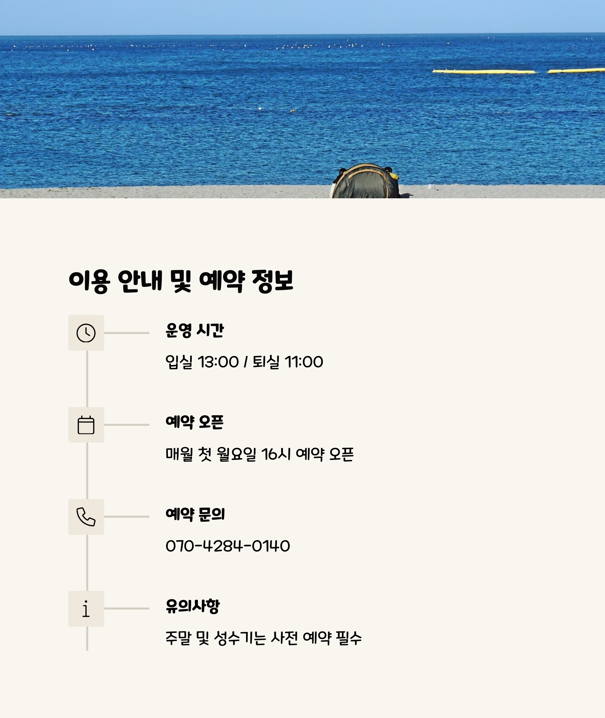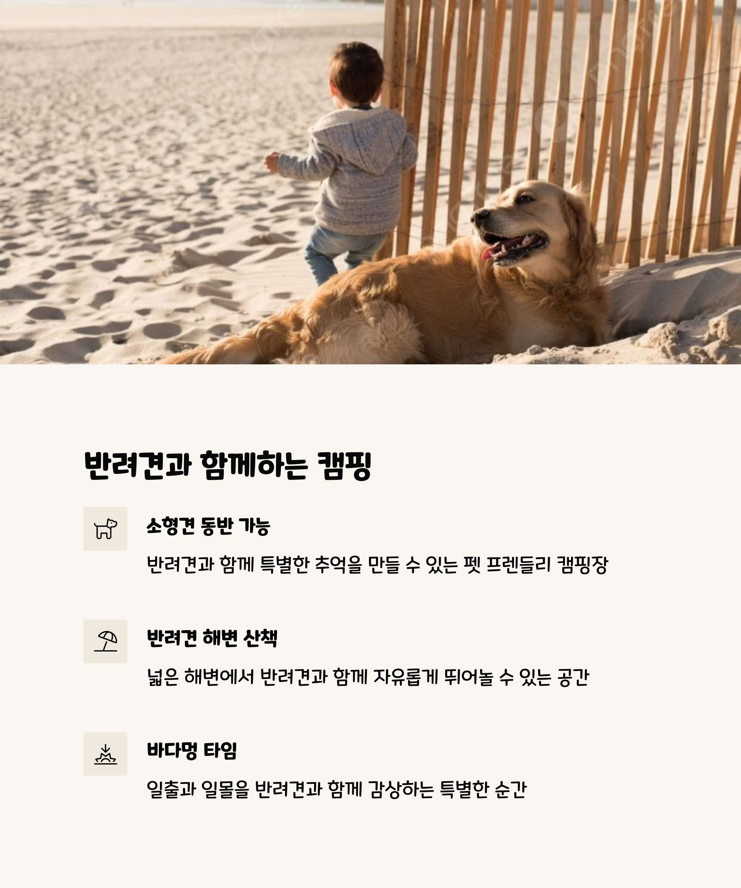 추천 포인트 | 바다 일출 감상, 모래사장 캠핑, 소형견 동반 가능 |