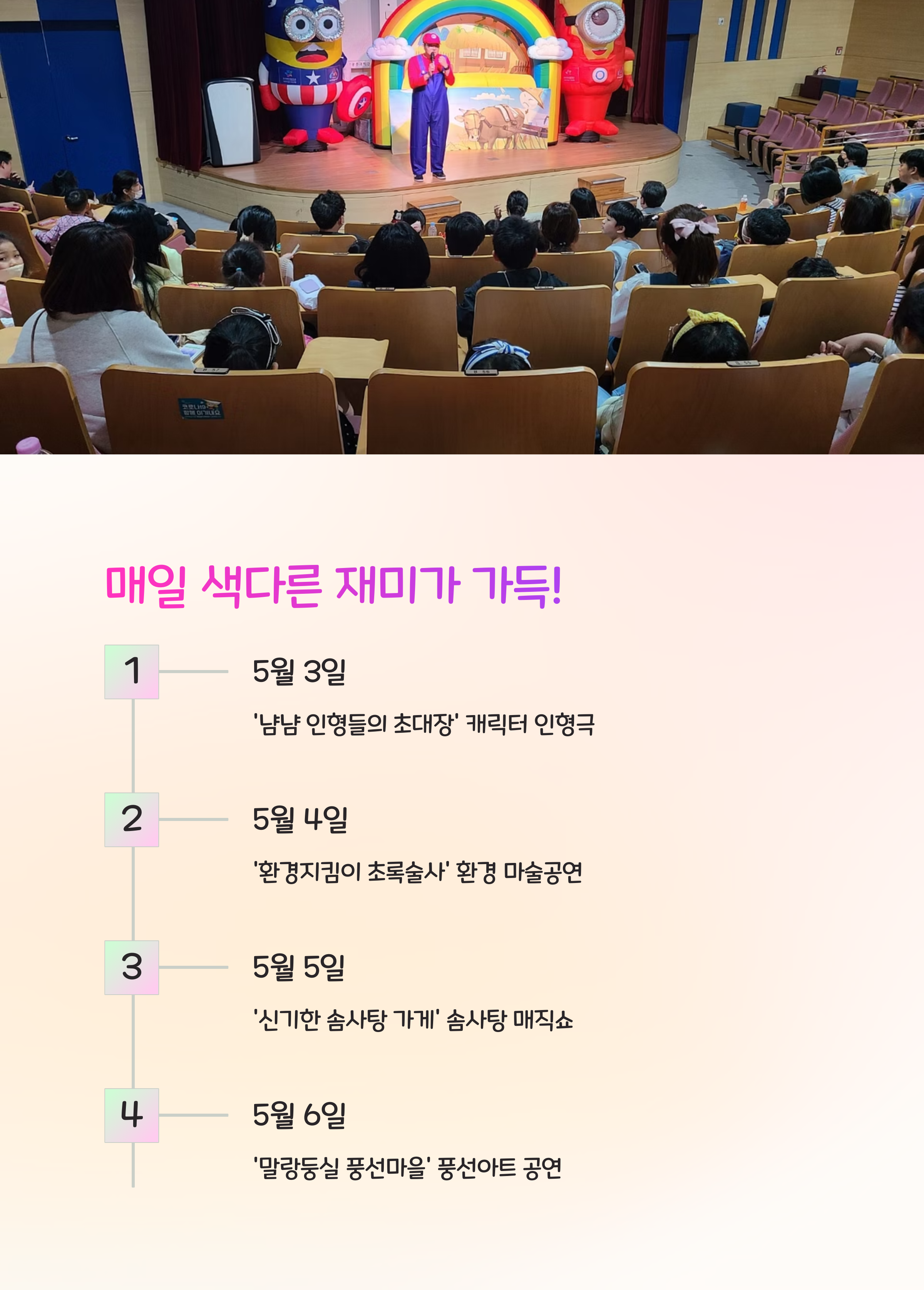 | 어린이날 특별행사 | 5월 3일 ~ 6일, 공연·체험·전시 무료 개방 |