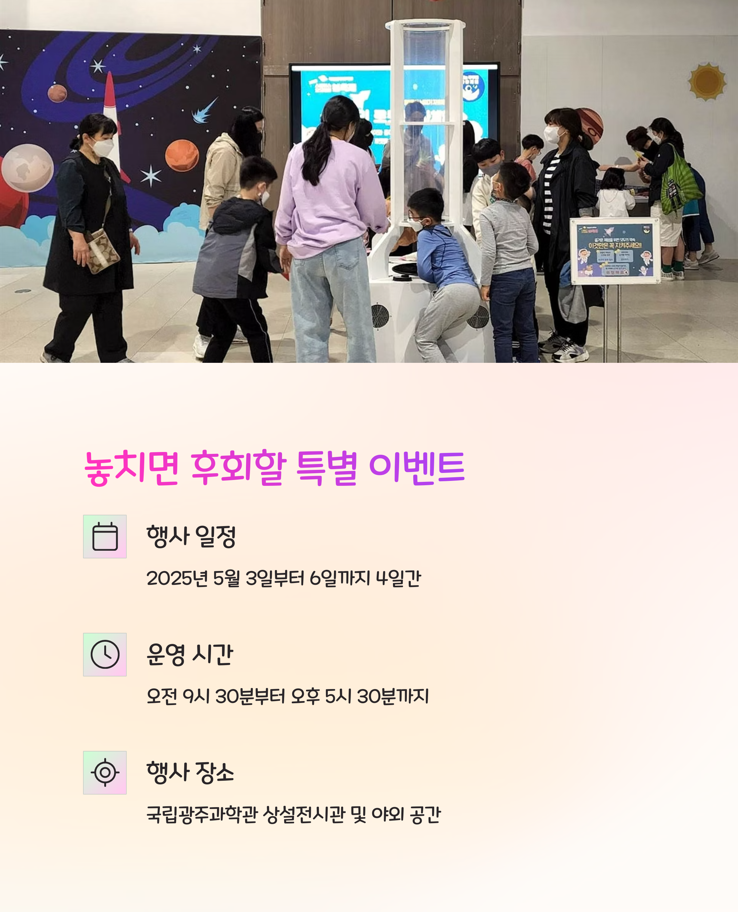광주 국립과학관 방문 후 어떤 프로그램이 가장 좋았는지, 아이들의 반응은 어땠는지 댓글로 함께 공유해주세요!