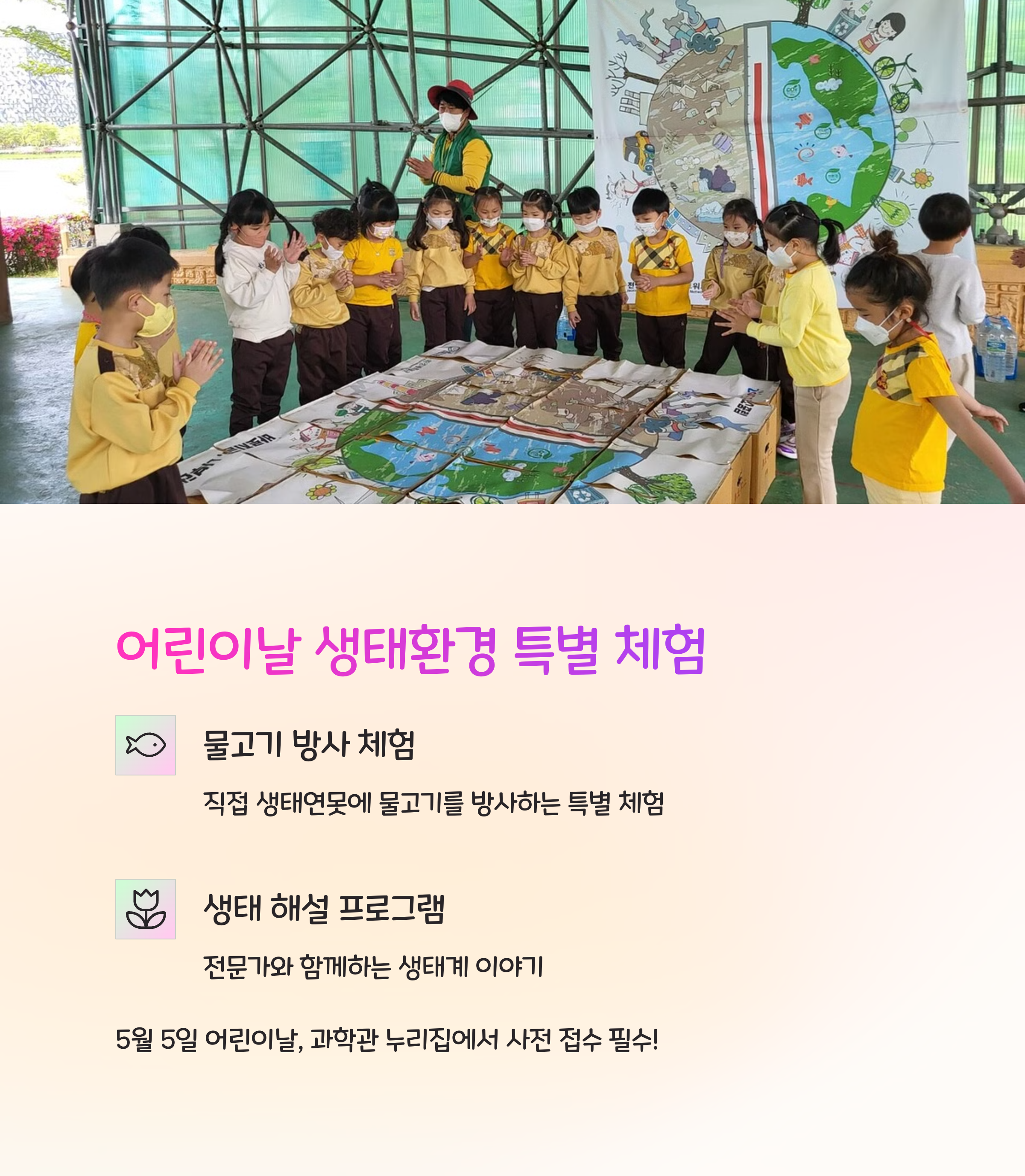 | 체험 콘텐츠 | 캐릭터 인형극, 마술쇼, 페이스페인팅, 생태해설 등 |