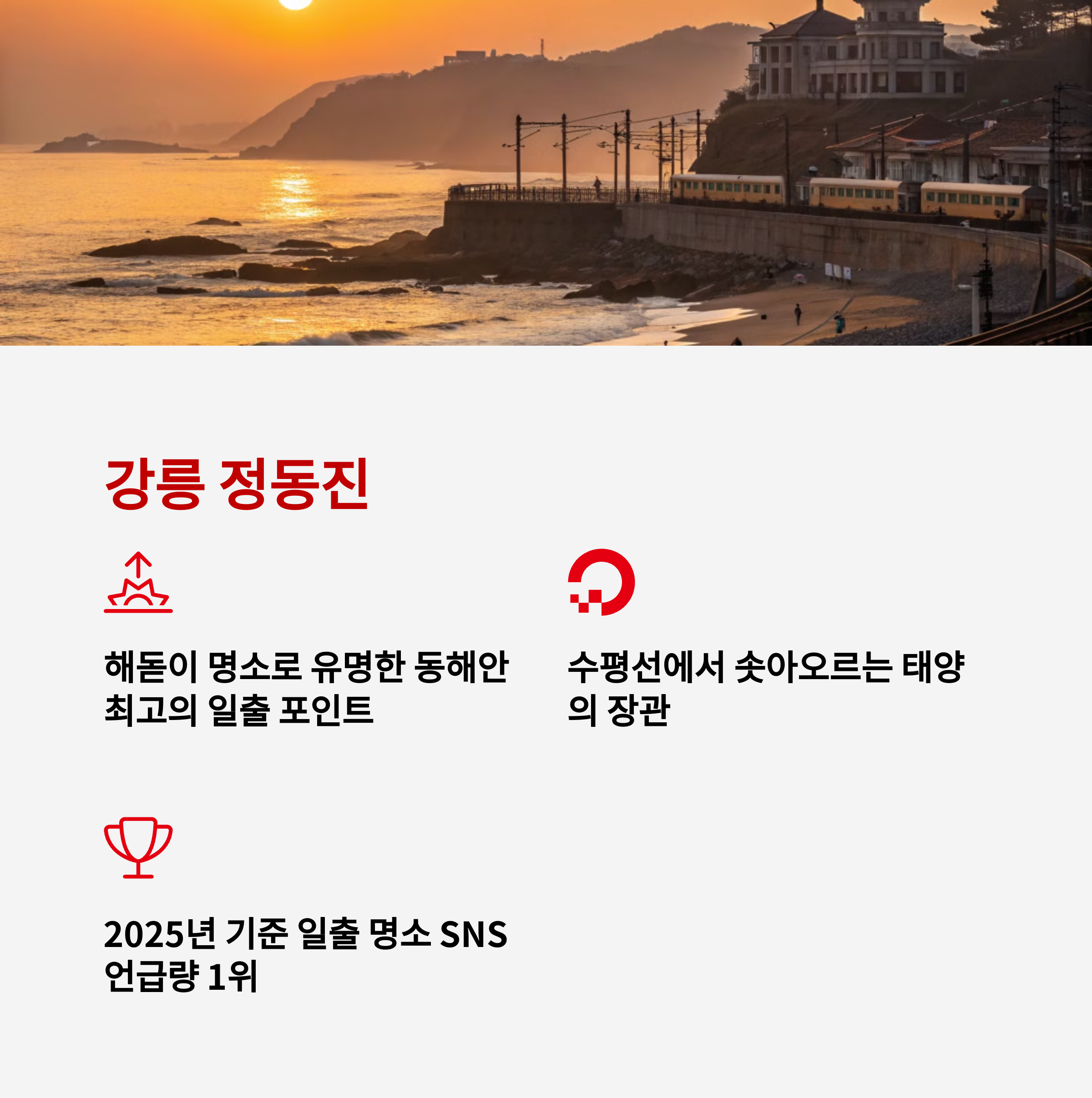 | 추천 이유 | 감성적인 풍경, 일출과 일몰 명소, 숲과 바다의 아름다움, SNS 인기 포토존 |