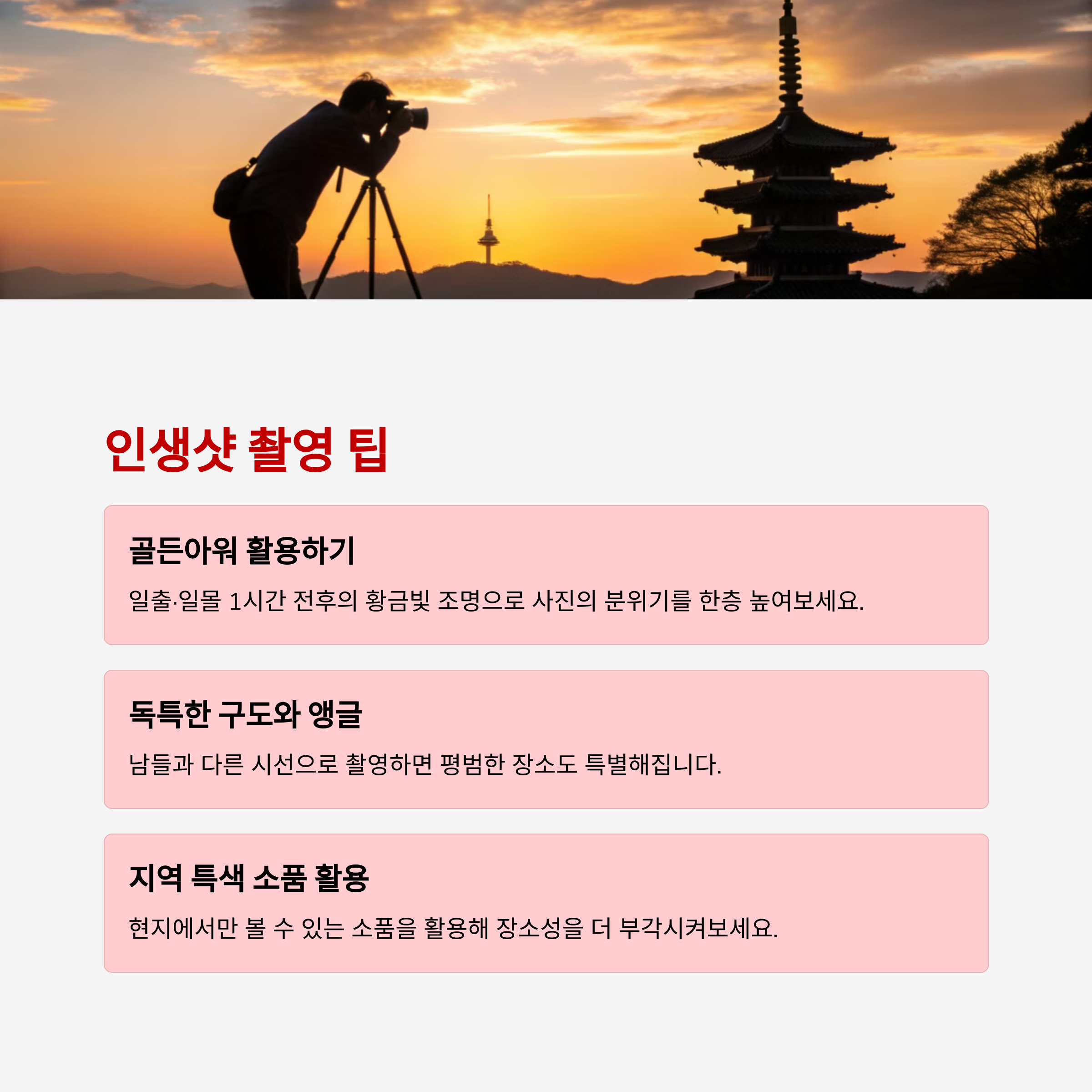 SNS에서 핫한 여행지를 찾고 계신가요? 감성적인 풍경과 멋진 자연 속에서 인생샷을 남길 수 있는 최고의 여행지 5곳을 소개합니다! 전통적인 매력과 현대적인 감성이 어우러진 장소에서 나만의 특별한 순간을 기록해 보세요.